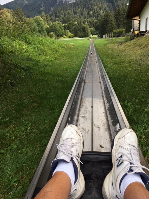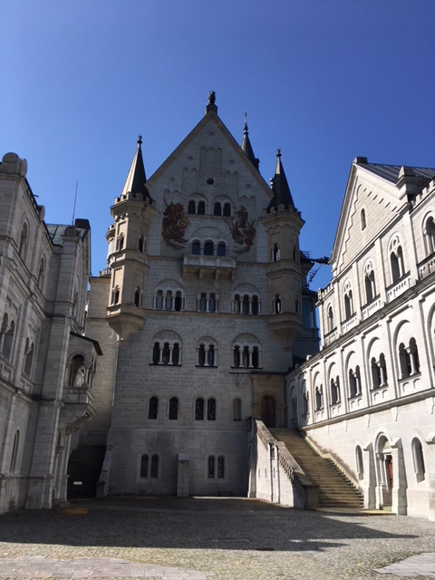Well today was castles day, as well as a little hiking and LOTS of steps. They definitely don’t have any ADA laws at these castles. Between both castles it was about 500 steps!Since they didn’t allow me to take pictures on the inside, I shared some pics on the outside showing each castle from the other’s viewpoint as well as some of the gorgeous scenery around there. I’ll also share some of the history on each castle.So the first castle I toured was Hohenschwangau (loosely translated as “High Swanland”). It’s the yellow one. Originally built in the 12 century, it was ruined by Napoleon and his troops. Mad King Ludwig’s father, King Maximilian II, rebuilt it in 1830. It was used by the royal hunting lodge until 1912. The Wittelsbach family (which ruled Bavaria for nearly seven centuries) still owns the place and lived here until the 1970s. Ludwig was raised here and lived here while overseeing the building of the other castle (Neuschwanstein). There was a telescope still set up that Ludwig actually used that was pointing directly at Neuschwanstein!I then toured Neuschwanstein (both were guided tours, that’s all they allow). Ludwig dreamed up this fairy tale castle while growing up. He inherited the throne at the young age of 18 so he had the power to make this dream come true. Neuschwanstein roughly translates to “New Sandstone”. It was first designed by a theater set designer and then by an architect. While it was built upon the ruins of an old castle and looks medieval, it is modern iron and brick construction with a sandstone veneer – only about as old as the Eiffel Tower. Built from 1869 to 1886, it’s the epitome of the Romanticism popular in 19th century Europe. Construction stopped with Ludwig’s death (only a third of the interior was finished) and within six weeks, tourists were going through it.During World War II, the castle took on a sinister role. The Nazis used it as one of their primary secret store houses for stolen art. After the war, Allied forces spent a year sorting through and redistributing the art which filled 49 rail cars!They said Ludwig really admired the composer Richard Wagner and we saw a piano that Richard actually composed a piece on. Many of the wall paintings were mostly based on Wagnerian opera themes. There were many over the top things within the castle but one of the most exquisite was a two million stone mosaic floor that was a visual encyclopedia of animals and plant life.So after seeing all these fairy tale turrets built by a fairy tale king in a fairy tale alpine setting, I was feeling like a little kid and needed to do something fun. So I took the bus a few stops away and did a luge ride down the mountain. It was a blast! Yes, those are my big feet in the pic being pulled up the luge course. I couldn’t take a pic on the way down because I was going so fast I thought I’d lose my phone!So that’s the end of my first portion of my Germany trip. I really loved Germany and never knew it was this pretty. I’ll circle back around to Northern Germany (Dresden and Berlin) in late October (just in time for Halloween! Lol).Tomorrow I cross the border into Austria. Next stop Innsbruck.Sounds like Flo has passed thru the Carolinas and I believe all of my family and friends are safe. But we all should pray for all those that are struggling from the massive flooding. I hope they all can get back to normal as soon as possible. Happy Monday!JeffPS: It seems like the Internet is down at my B&B so I had to walk over to the TI to send this email. See how dedicated I am to you folks! Lol. What that also means is I probably won’t be able to reply back to emails tonight. Hope it’s better in Innsbruck!