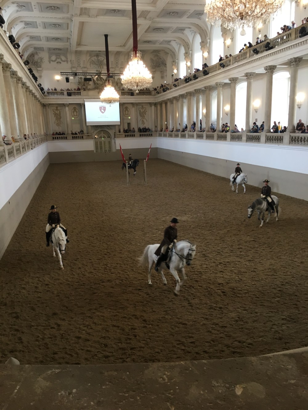 I spent the morning watching the beautiful Lipizzaner horses practicing for their big show this weekend. They’re housed at the Spanish Riding School, which is a stately 300 year old Baroque Hall within the Hofburg Palace area.