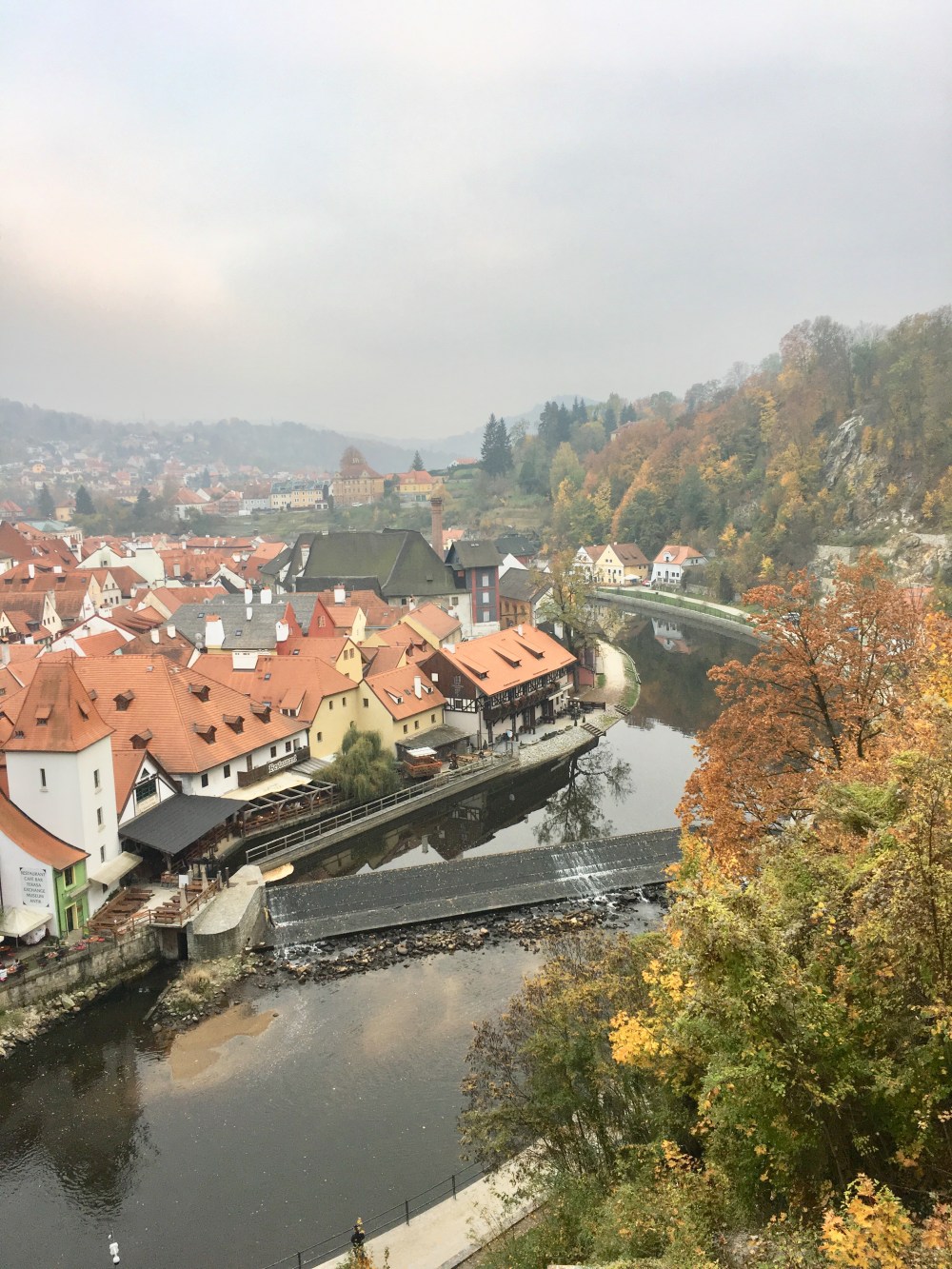 The little town of Cesky Krumlov (CHESS-key KROOM-loff), means roughly “Czech bend in the river”. It’s so picturesque. It’s surrounded by mountains, lassoed by a river (Vltava) and dominated by it’s castle. It’s Old Town is filled with cobblestone streets, quaint shops and lots of restaurants.