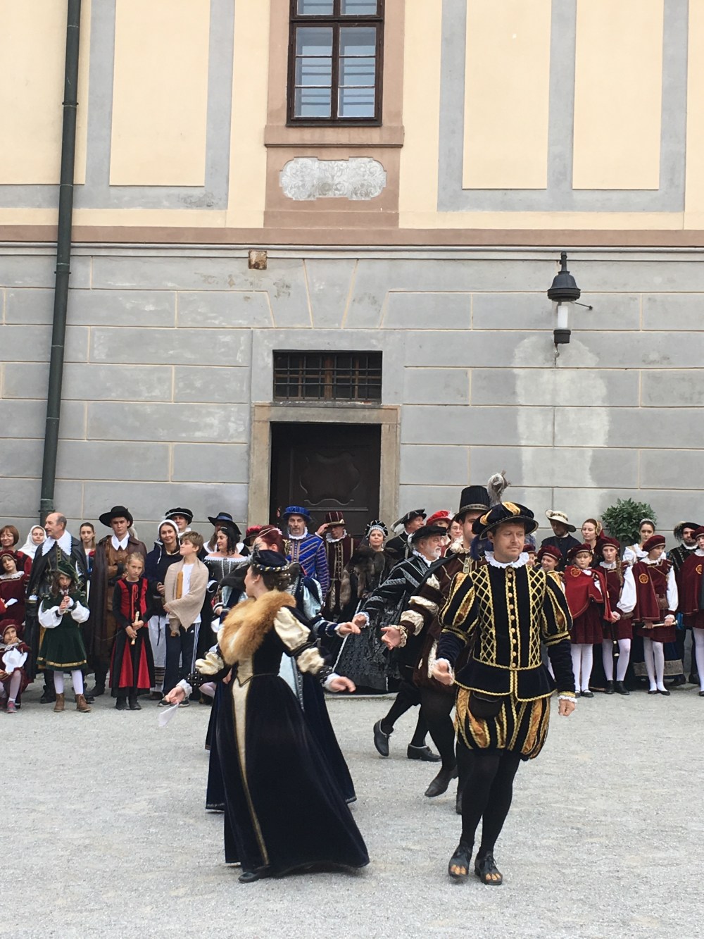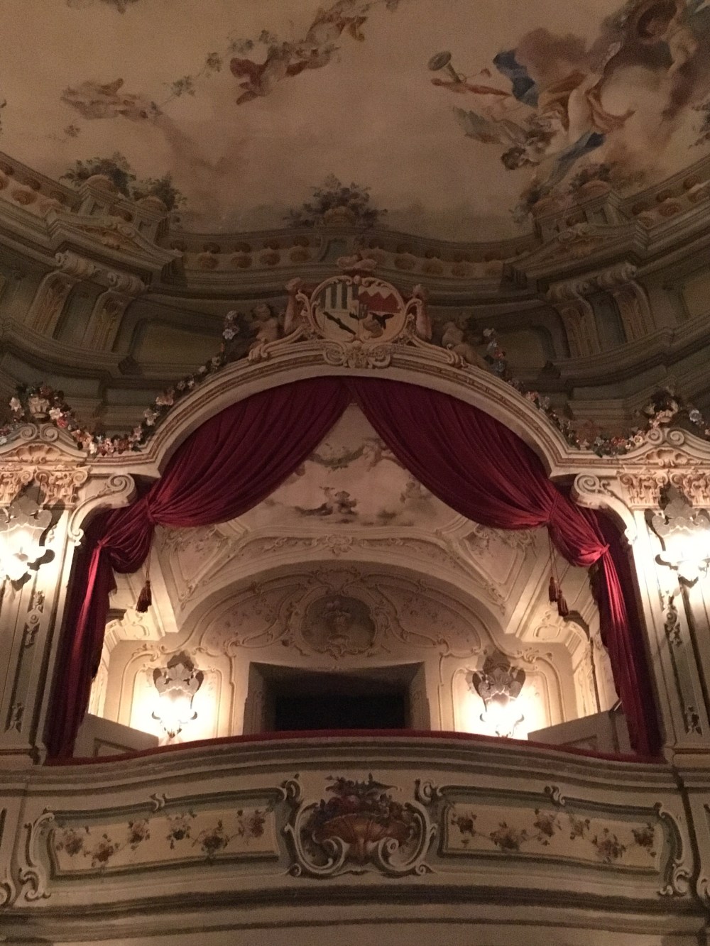 After the walk I took a tour of the Baroque Theater that’s part of the castle complex. It was built in 1682. Europe used to have several hundred Baroque theaters that used candles for light and fireworks for special effects but most burned down. There are only two left in the world and this is one of them and the other is in Sweden within the Royal Palace. We got to go underneath the stage to see the wood and rope contraptions that enabled scenes to be changed within 10 seconds. It was a lovely theater with an impressive 3-D effect that makes the stage look deeper than it really is. And the people used to sit on wooden benches!