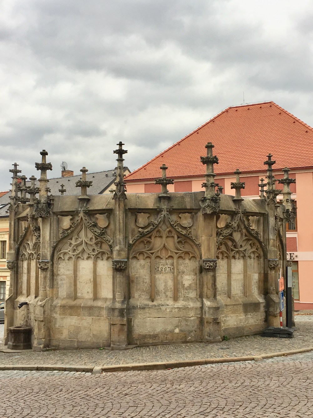 One of the other interesting pics is the stone fountain. The intensive mining released toxins spoiling the water supply so the town had to bring in clean drinking water and store it in tanks. At the end of the 15th century, this 12 sided, richly decorated Gothic structure was used to cover one of the waster tanks. Although no longer functioning, the fountain survives unchanged – the only structure like it in Bohemia.