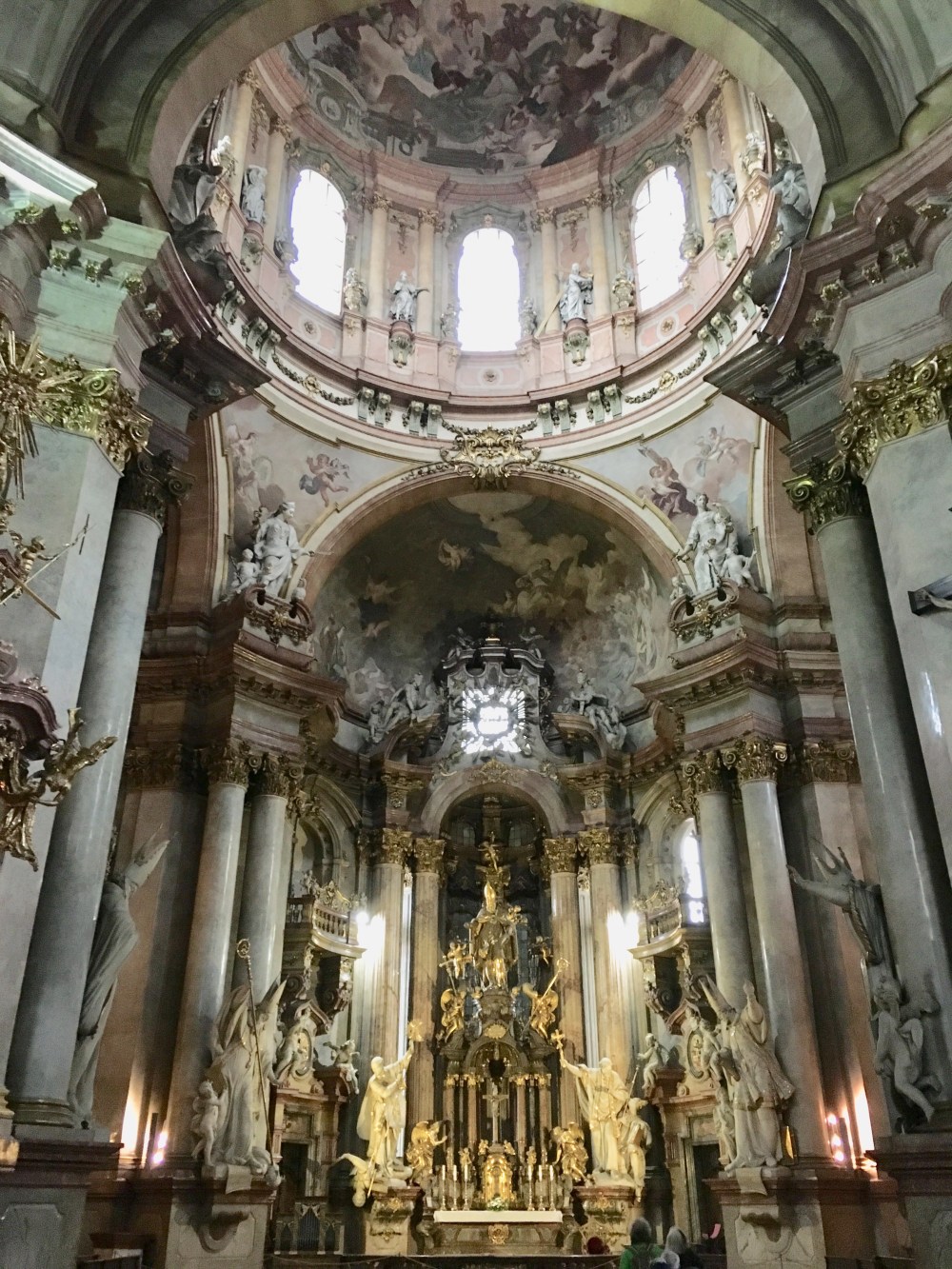 The first is the Church of St Nicholas (in the Little Quarter). It’s a Jesuit church and if you zoom in you can see at the top a gold plated Nicholas flanked by the two top Jesuits, St Ignatius Loyola and St Francis Xavier. Sounds like a couple college basketball teams!