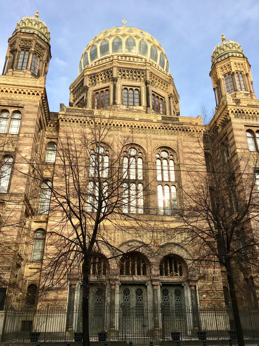 Next is the New Synagogue. It was built in 1859 as the main synagogue of the Berlin Jewish community. Because of its splendid eastern Moorish style and resemblance to the Alhambra in Grenada, Spain, it is an important architectural monument of the second half of the 19th century in Berlin.