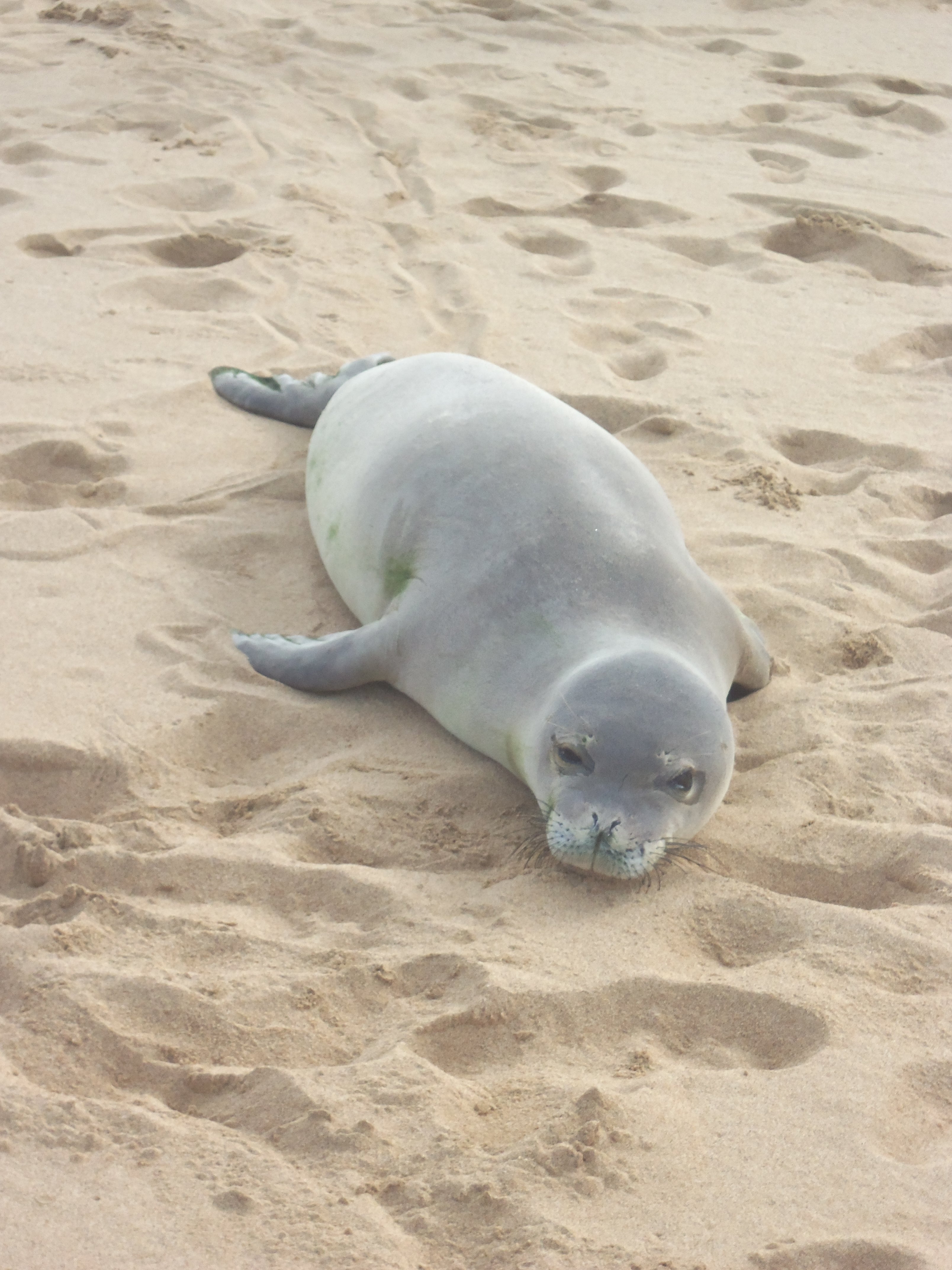 So I set out today to find as many of the "hidden beaches as I could. What a blast! And what beautiful, private beaches. One of them is where they filmed that old movia South Pacific. And when I got to the one called Secret Beach, what do I find but a sole nudist! Yes, this beautiful female, just lying there buck naked... so I did what any red blooded male would do... I walked up with my camera and zoomed in and took a photo... of course I attached it for you all... isn't she a cutie? She's a seal!! Yep, there she was just hanging on the beach. So cool! I also took a trip over to the Kilea lighthouse and attached a pic. I didn't realize it but I caught a cool white bird in flight in the photo. So while I was there, I had to stop by the Kilea Bakery since my good friend Leanne, who had been to the island before, recommended their chocolate-coconut eclairs. WOW, they were to die for! Now I will have to do some hiking to burn that one off! By the way, the picture I sent last time was a sunrise not a sunset. So here's today's puzzle. I've attached a picture of the mountains in the backdrop from the beach. Try to find all the waterfalls cascading down the mountain. I see at least 8 but I think there may be more. So I actually may rest this weekend and just park my butt on a few of those nice beaches I found. We'll see. Hope everyone has a good weekend! Jeff