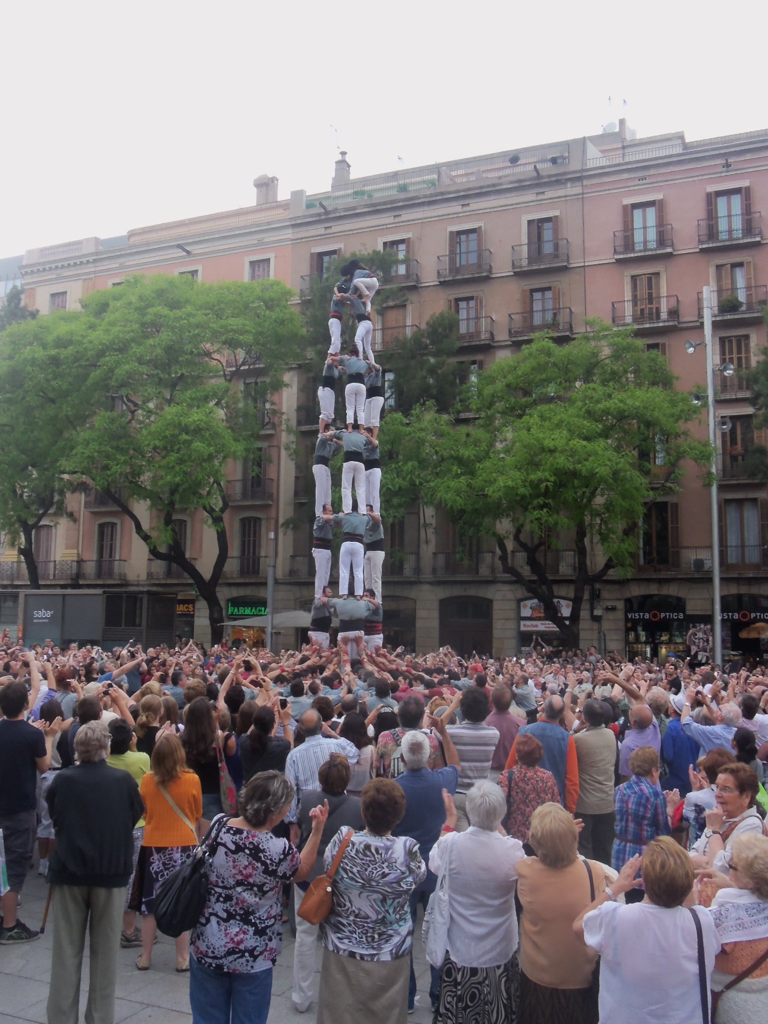 Hi all! OK, who wouldn't want to combine all those things in one sunny day in Barcelona?? I started my day off with a two hour gourmet walk thru Barcelona put on by the tourist bureau. Dang, I should have done this day one so I could keep going back and frequenting these places. We stopped at 12 different places and got to sample things at most of them. We went to the big open air market (La Boqueria I mentioned on day 1), several chocolate places, an olive oil store, a tea place, a wine store and a cheese place. At the last place we got a free tapas and drink. Not bad. After that I went over to the Catlan Concert Hall (also known as Palau de la Musica Catalana). The building itself both inside and out was gorgeous. Not sure if I mentioned this, but Barcelona is a very independent part of Spain with it's own language (Catalan) and it's own flag. You see many signs hanging saying "Catalunya is NOT Spain!". So this concert hall was a way for the people to perform some of the own music and rituals that weren't always acknowledged by Spain, especially during the reign of the fascist dictator Francisco Franco. So the people of Barcelona are very proud of this building and the performances that go on there. I included a picture of both the inside and outside. After that, I went over and toured the Pablo Picasso Museum. It was very interesting to watch his work change throughout his life and the influences the various world events and other artists had on him. After that, being the chocoholic that I am, and having been teased with chocolate several times during the gourmet tour, I went and toured the Chocolate Museum. Yep, they have one! I didn't realize that Barcelona was the main port that imported chocolate to all of Europe via Christopher Columbus and others bringing cocoa back from the Americas. It then spread from Barcelona to other places throughout Europe where they further refined it and customized it to their tastes (Switzerland, Belgium, etc.) Believe it or not, they had a chocolate figure of the Black Madonna I saw yesterday in Montserrat but it was behind glass so I couldn't eat the orb!! I included a picture of it! After that, I did come home for a short little siesta (of course I had some chocolate at the factory and it made me sleepy!). In the evening I went over to the plaza in front of the cathedral where they were having a festival. This band was playing and all these older people started doing their native dance called the Sardana. They all get in a circle and put their belongings in the middle (both to show family unity and to keep them away from the pick pocketers!) and hold hands and dance around. Very cool. Then these other people start forming this human chain about four layers high with the bottom people probably dying in pain! Again, just a very neat way to experience their culture in a festive atmosphere. Well, today's my last day. I have to come back a day early due to no standby seats being available on Monday. Over the next day or so, I'll send out my final (philosophical) email for this trip! I hope everyone has a safe and happy Memorial Day Weekend!