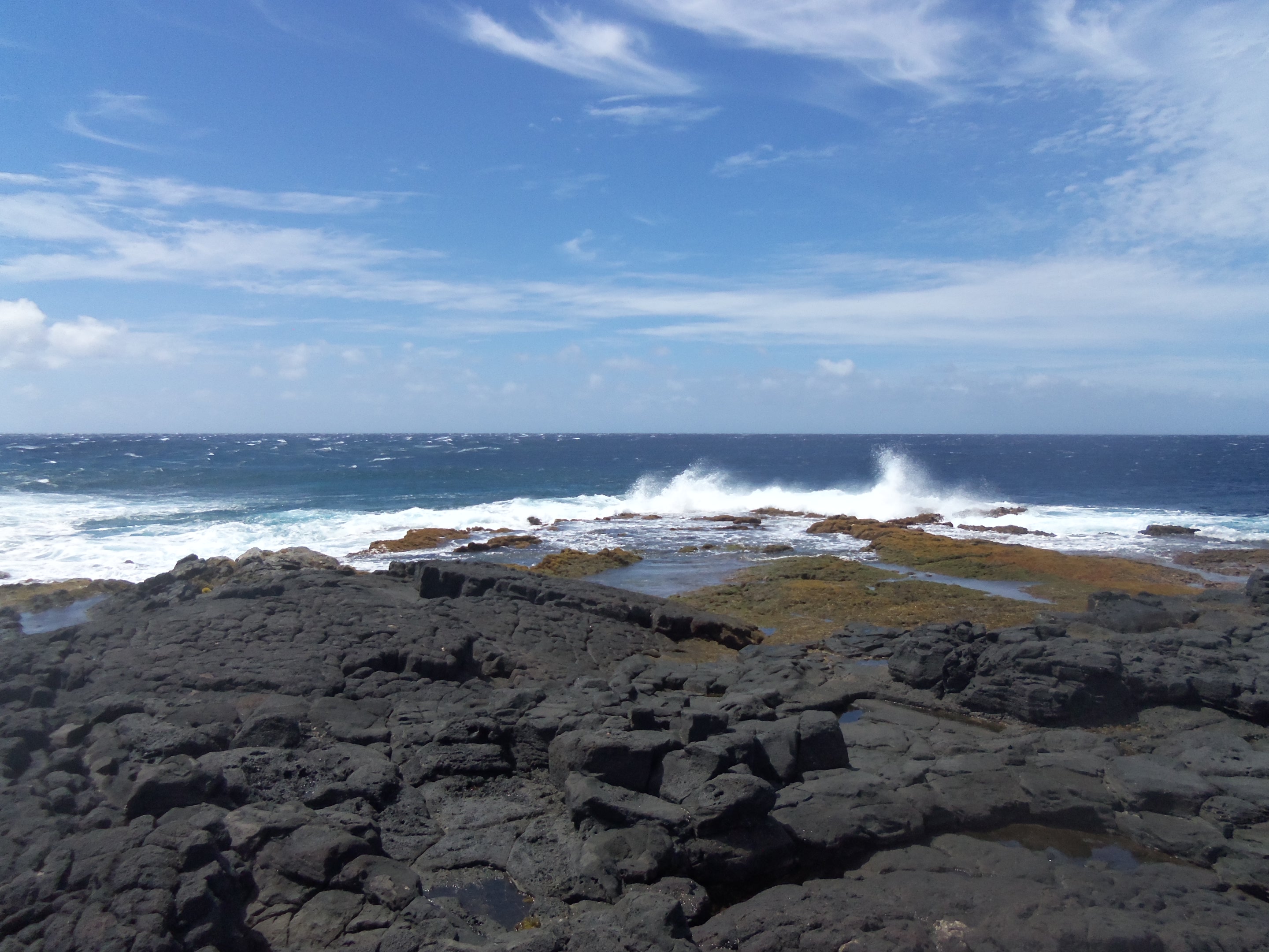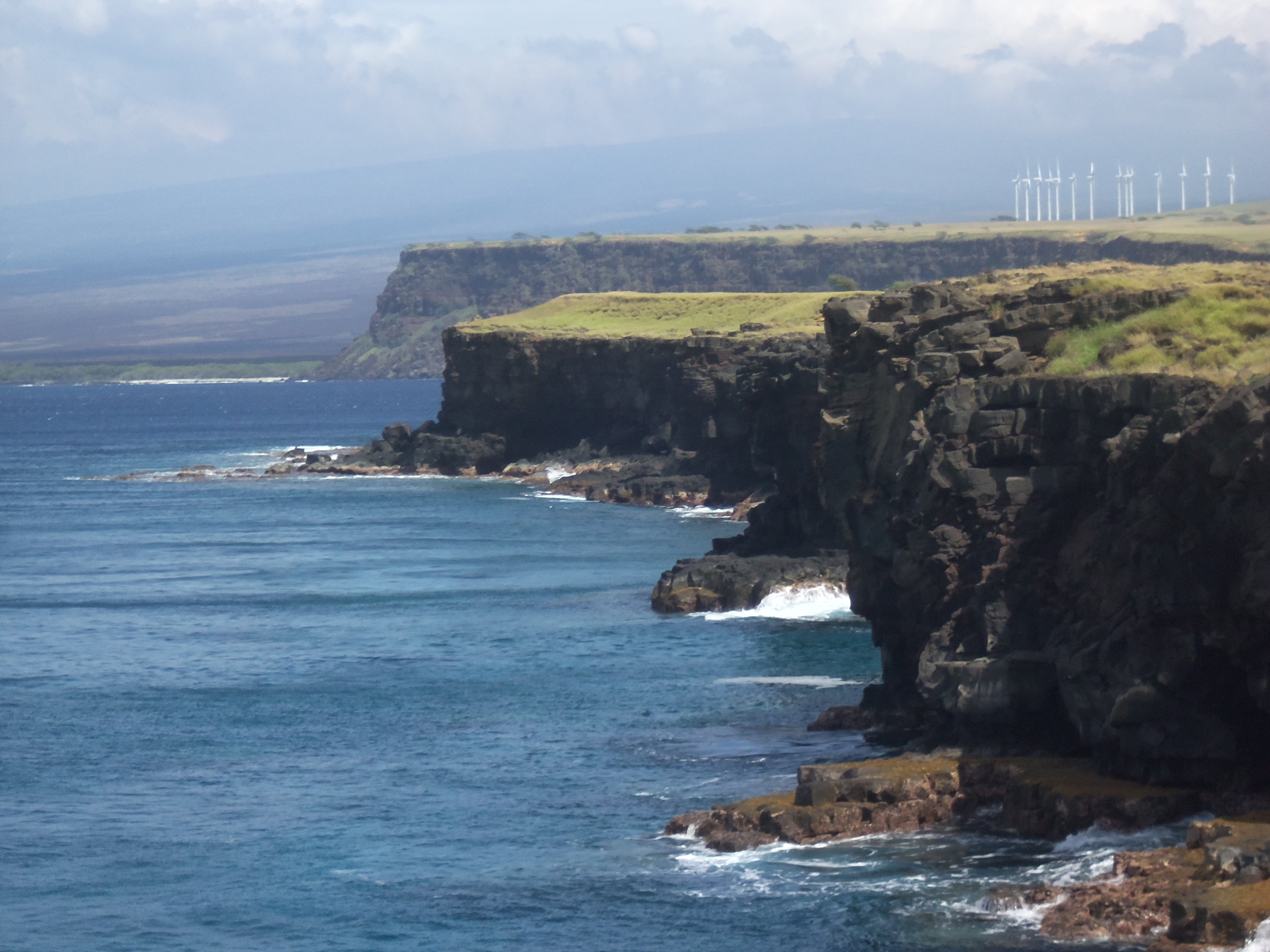 Well, sort of southwest. I decided today since I had seen the northern most tip of the island, I had to check out the southern most tip, which is aptly called South Point and is really in the southwest portion of the island. FACTOID for my trivia teammates, this location is actually the furthest point south in the United States. Not Key West as many people think. Of course like the northern tip it too is extremely windy, I think even windier than up north. There was also a wind farm here as well. I included a pic of the rocky coast line and you can see the wind mills in the background. They say the currents from this point are uninterrupted all the way to Antarctica. The pic of the actual southern most point is the lava rock looking beach with a brown mossy area. Of course I couldn't be happy just seeing the southern most tip, I had to head across to see the eastern most tip. FACTOID #2 - Scientists have set up testing areas here to test the "virgin air" since it has drifted over the landless Pacific Ocean for weeks before getting here. I have to admit, it didn't smell any different! LOL. The pic of the eastern most tip is the one with all the white swell. I also visited a really cool black sand beach and a man made pool right along the ocean that's both warmed by an underground spring from the lava as well as fresh ocean water mixing in it during high tide. Very cool! There is also a green sand beach (I'm not kidding) but I couldn't get to it because you needed a 4WD. FACTOID #3 - the green sand gets its color from a large deposit of a semi-precious gem called olivine that mixes with black sand which both are caused by the volcano. Speaking of the volcano, I'm heading there on Monday but most of the lava is underground and it's not now flowing into the ocean where it's easier to see. In an effort to help it along, I decided to stop at a few church sites for extra "prayers". As you know from my past blogs, I support religious diversity so I visited both a Catholic and a Buddhist church (Note I get 5 bonus points for also finding a Buddhist cemetery!). But actually, legend here says you have to give a human sacrifice to the goddess Pele, the goddess of the volcano. I'm about ready to hand over my landlady as a sacrifice since her darn internet connection keeps going down! Just kidding people, puh-leaze! Well, sorta, kinda! Hope everyone is having a great weekend! Jeff