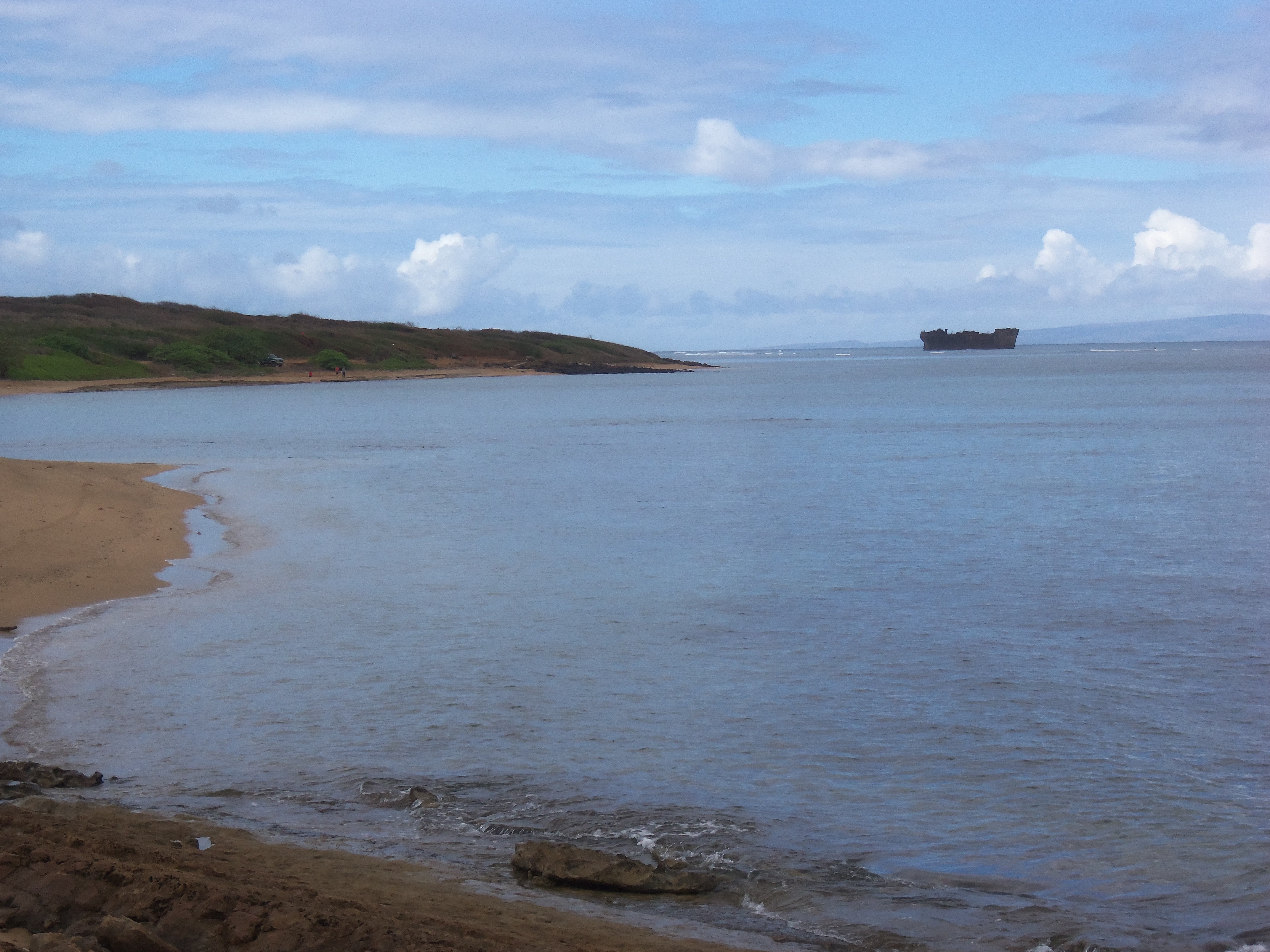 Hi all. Well the booming metropolis of Maui got too crowded for me so I decided to head across the water to its sister island of Lanai'i (population 4000). By the way, on the drive to Lahaina to catch the ferry, I saw a rainbow since it was clear on the Maui side and raining on the Lanai'i side. But when I got to Lanai'i, is was all cleared up. I decided to do a tour since it would be good to hear all the history and be chauffeured around. The island was really cool. It was a half day tour but including the ferry ride over and back it went from about 9 AM to 3 PM. I also saw a ton of whales on the ride over and back. This time of year, the whales are everywhere! Some things I didn't know about the island that I learned... David Murdock owns it! For those in Charlotte, he's the billionaire that bought the Fieldcrest/Cannon plants in Kannapolis and has converted them to a research park focused a lot on nutrition coupled with Duke, Carolina and NC State. This island is also where Bill Gates got married. So figured I was in pretty good company! I was with 5 other people in this suburban with 4 wheel drive and we needed it since some of the back roads were really rough but it was a blast. There's this huge area called the Garden of the Gods that looked like the lunar service similar to the volcano from day 1. Tons of rocks all over, which make up the "garden". There was also this spooky forest we drove through where they say lots of ghosts live. The history way back is that one of the other chiefs of the other islands tried to conquer Maui but couldn't, so he came across the bay to Lanai'i and killed all of the inhabitants, since it was under Maui rule. Those people back then were crazy! We also drove down to this cool secluded beach called shipwreck beach, so named since many ships have wrecked right off the coast. There's actually one still in the harbor and I included a picture of it. After I got back to Maui, I had an hour or so to kill before I went to the Luau. I had kept hearing about and had read about the "shave ice" and how it was so good. I kept thinking, are they just talking about a sno-cone as we used to call it as a kid. What's so great about that? Well, I found out. Those things are awesome! I went into the store in Lahaina that the guide book recommended had the best ones and it did not disappoint. These things are huge. Think of a sno-cone on steroids! It's served in a big bowl and has ice cream on the bottom, a ton of shaved ice packed on top, 3 different syrups spread on it (I got mango, guava and coconut) and topped off with what they call a Hawaiian snow cap which is sweetened condensed milk. This thing was decadent! Then I walked down the street to the Luau. I went to the Old Lahaina Luau which everyone said was the best. It was cool to watch them "unearth" the pig that had been roasting all day under hot coals, banana leaves and sand. So while I'm standing there waiting for them to get the pig, I see this huge guy standing next to me with an NFC/Pro Bowl football hat on. I figured he had to be a pro football player since he was so huge. We started talking and yep, he was Scott Wells, who is the center for the Green Bay Packers. He played in the Pro Bowl and just stayed around Hawaii for 3 weeks with his family. He was a really cool guy and he said he was good friends with Ryan Khalil the center for the Carolina Panthers. Cool stuff. By the way, the food at the luau was awesome. They actually do pulled pork right up there with the best of the North Carolina places! Well, I hope everyone is having a good week. Happy Tuesday!
