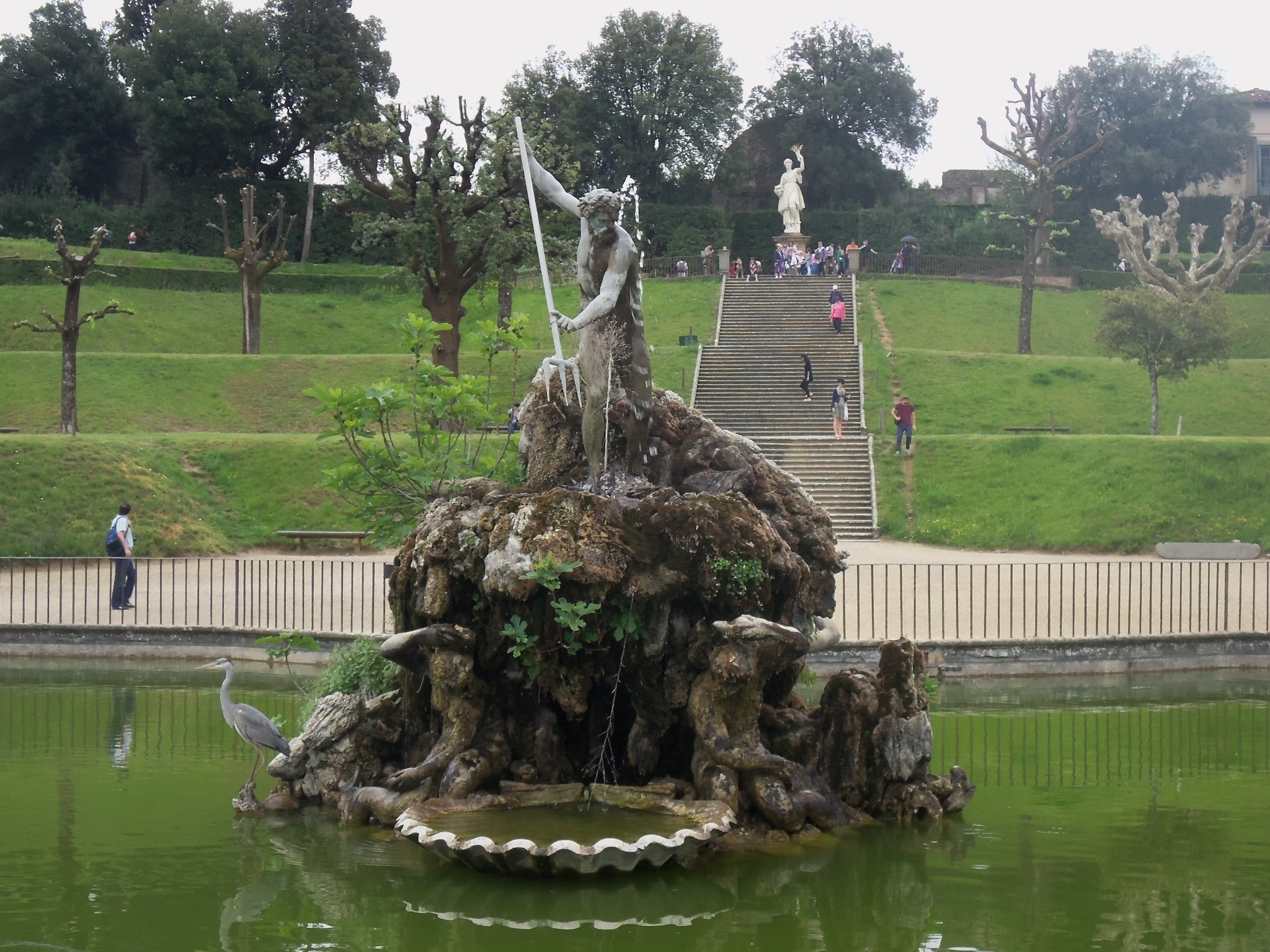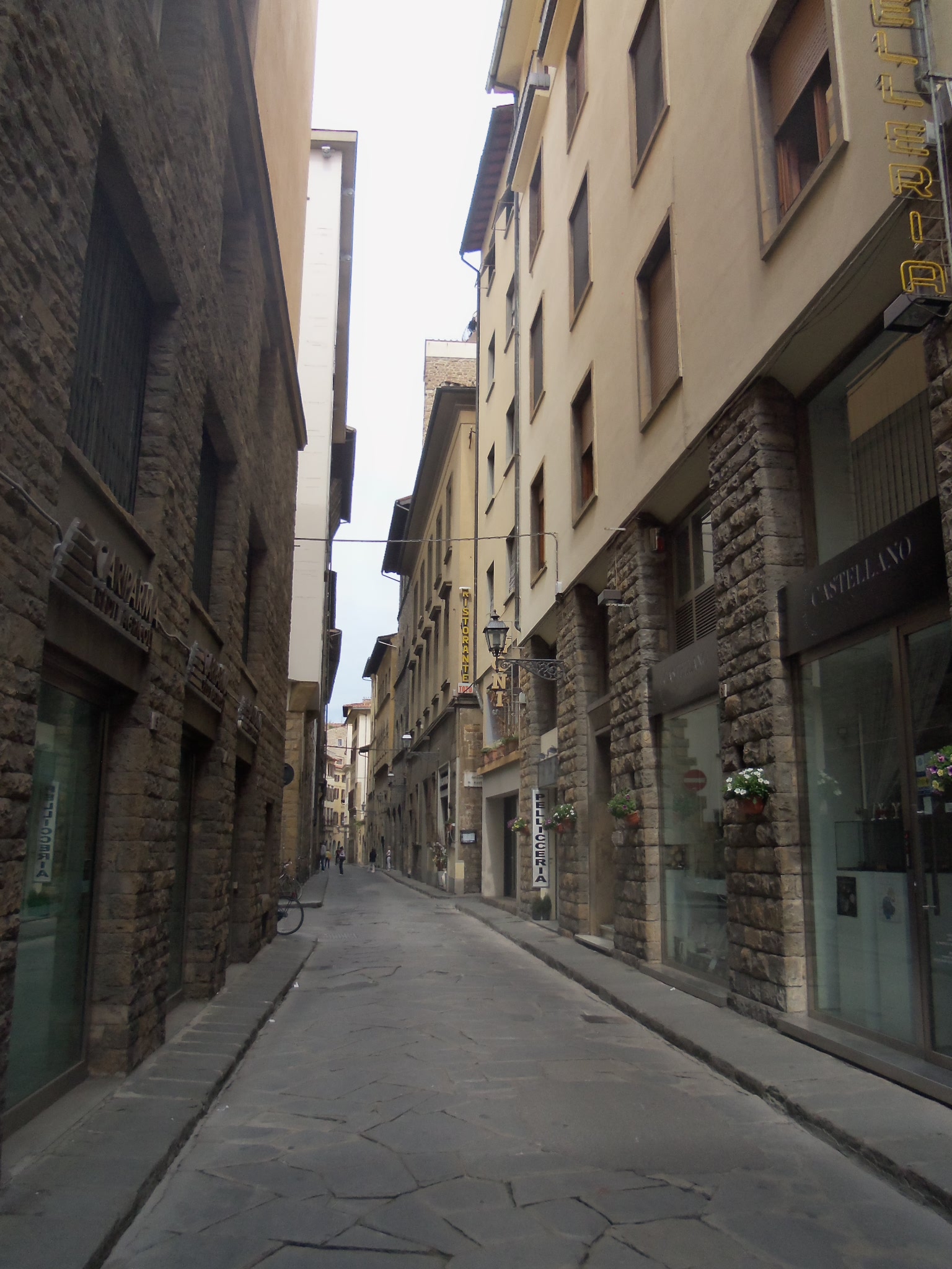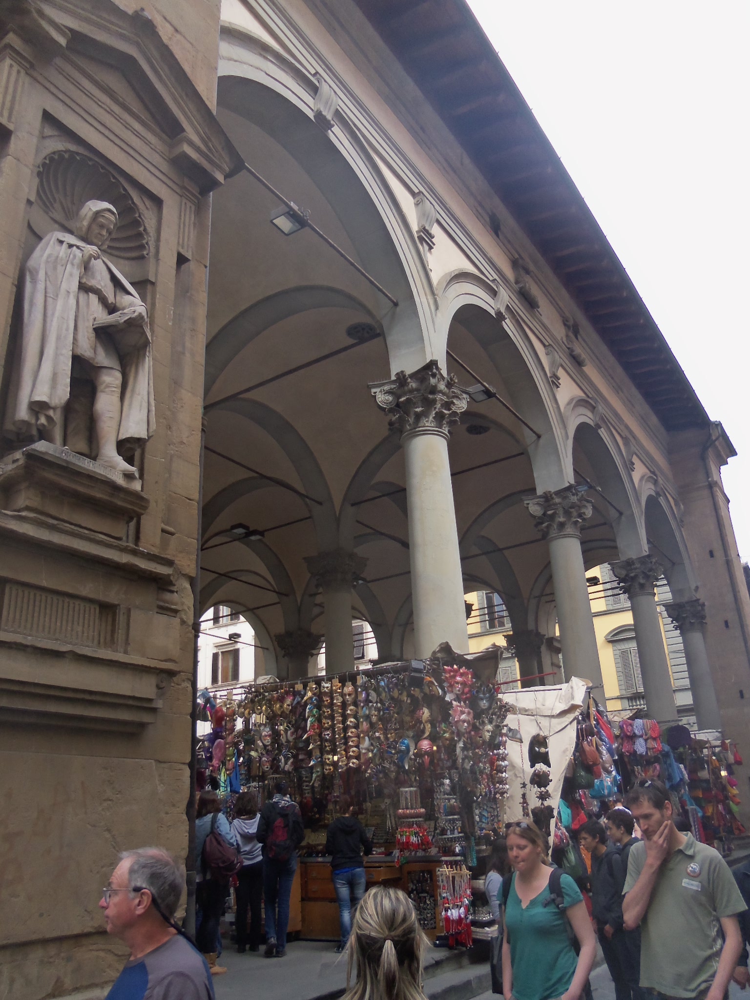 Today I took it a little easier and even slept in a little! All this walking and touring is tiring! So for the morning and early afternoon, I toured the Pitti Palace and the Boboli Gardens attached to it. It reminded me of the Palace of Versailles just outside Paris, but on a much smaller scale. Inside the Palace were both some really nice Italian paintings as well as the various elaborate rooms used by the Medici family. The first Medici was one smart businessman. He was a finance guy and got the gig to be the banker of the Pope. Who at the time was Pope Wells Fargo the third. (OK, I hope nobody bought that cheezy line!) But seriously, what a great business model to marry what at the time was probably the two most powerful things, which were Banking and the Catholic Church. Gordon Gecko step aside! So the Medici's were the power brokers of Florence and built this big old palace to show it all off. Both the building itself and the grounds were really impressive and it had great views across the river back into Florence. I've included a few pictures of the outside. Check out the whooping crane right next to the fountain. Cool! The inside, like a lot of palaces, has so much art crammed on to every imaginable space on the wall as well as the ceiling painted that it's a bit busy but it definitely shows off who's got the cashola! 🙂 I included a pic of one of the rooms so you can see for yourself. In the afternoon, I just wandered around and got "lost" down several side streets like the one I included here. Though it's a relatively large city, there are still many side streets tucked away further from the Duomo where you can really enjoy the quiet and beauty of this city. I also included a picture of what I thought looked funny. Here is this beautiful old portico with columns and statues and they turned it into what appeared like a sort of tacky flea market type thing. Gotta love commercialism! Well I hope everyone's weekend is winding down nicely. Take care.