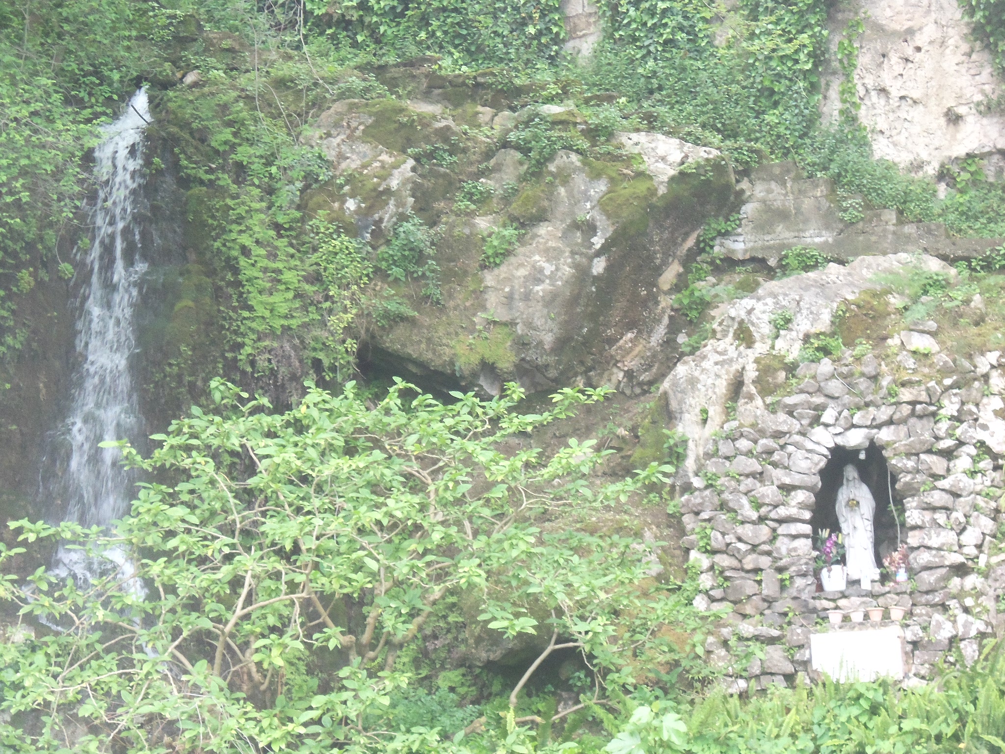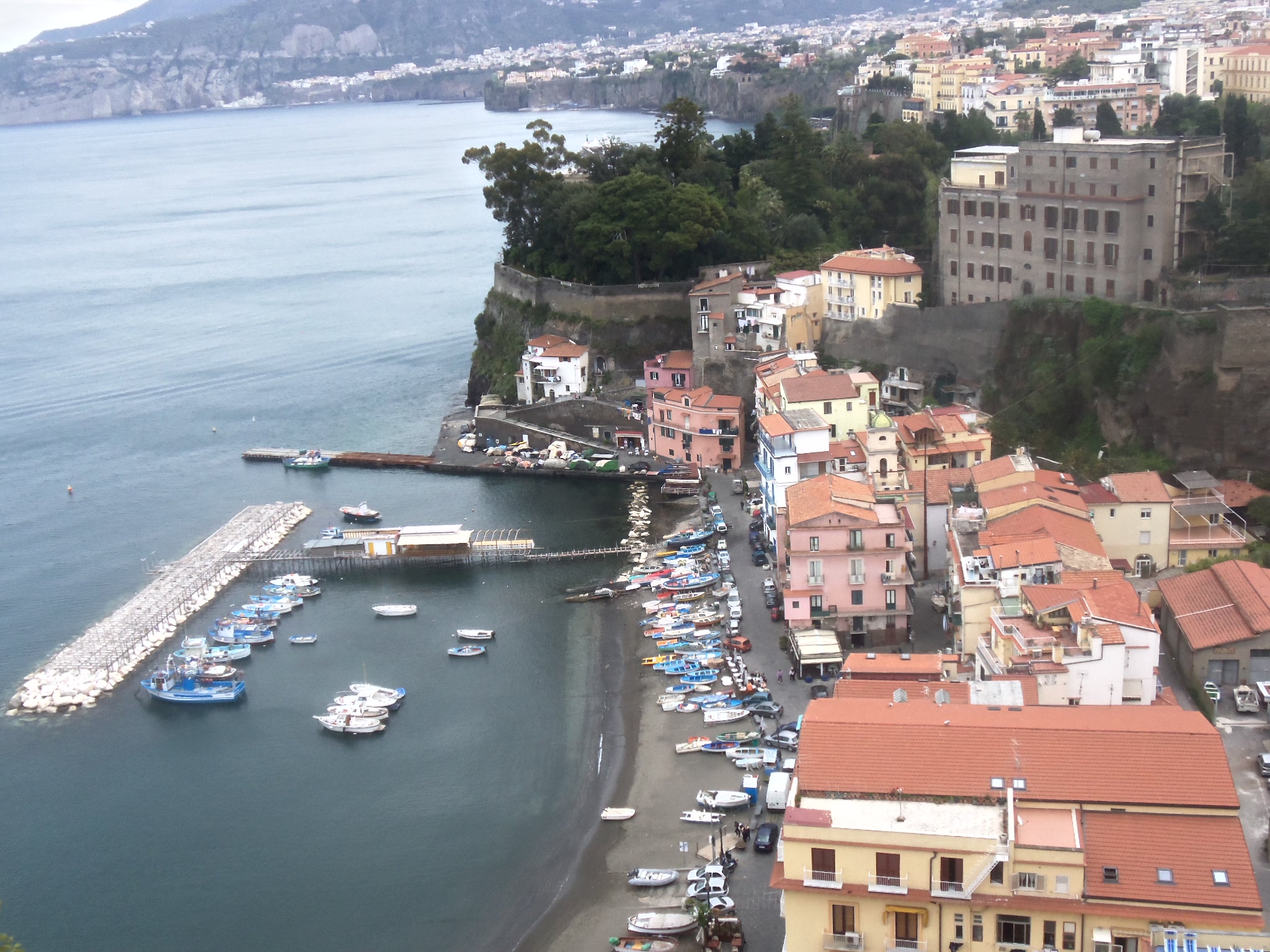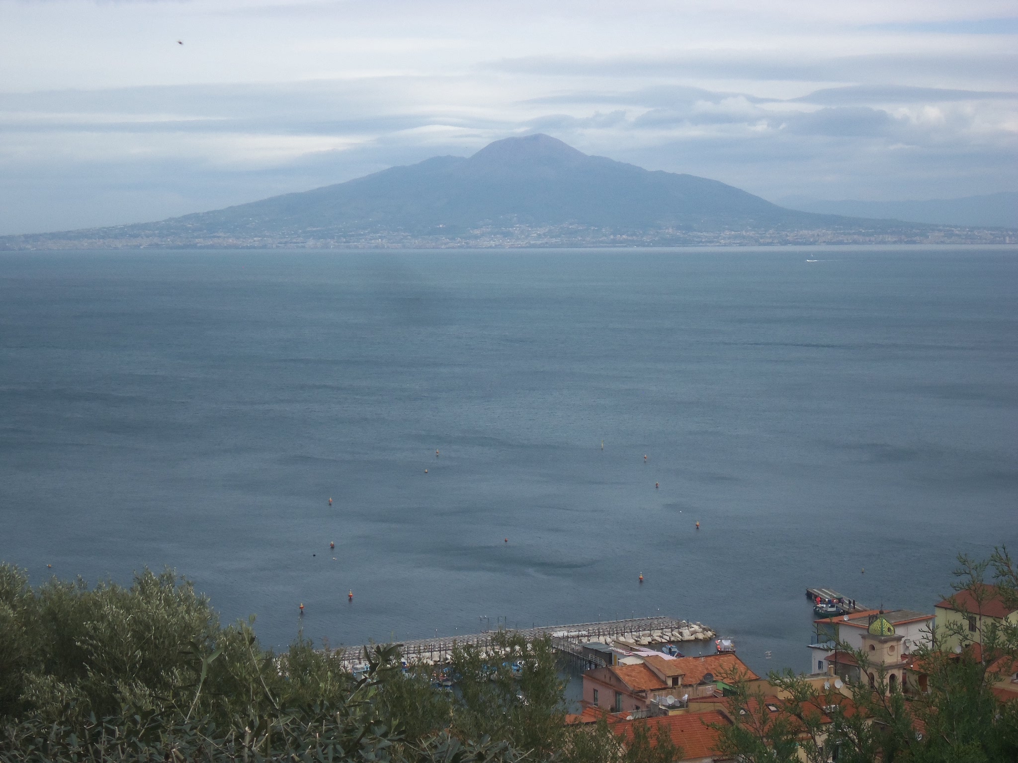 Today was a day of contrasts. Sorrento is so different than Rome. It's really a small town sitting on a cliff hanging over the ocean compared to a large city situated inland. Sorrento reminds me a little of Orvieto but with a few more tourists (and nicer views out across the water). My main man Rick hooked me up with a great hotel. The picture looking out across water toward the mountain (that's the volcano Mount Vesuvius) is the view from my balcony! The other major contrast on the way here was the difference in trains I had to take. The first train was a very nice, relatively new, super-fast train (180 MPH) from Rome to Naples. It was plush and comfortable and hardly any one on it and it didn't stop at all. I then switched trains in Naples and had to take this slow little commuter train to Sorrento that was jam packed with people and stopped in every little village. It was interesting but I made it here safely. Sorrento also like Orvieto has lots of small little alley ways and side streets that were ripe for exploring today. The town is sort of split in two. There's the more commercial part with shops and restaurants up on the cliff and then down below at the shoreline there's a fishing village and boat ramps for trips to Capri and other islands. One of the main fruits grown in the region is lemons... check out the HUGE lemons in the picture! One of the fun products they make from it is a liquor called limoncello. There are a bunch of shops, all in a row, trying to sell the same limoncello product, so they all give free samples to get you to buy theirs. Needless to say, the walk around town is a lot more enjoyable after all the samples! 🙂 So it seems like I've got a lot of the Hawaiian themes following me here. I've already seen several palm trees, there's a volcano here, and today I included a picture of a waterfall I found... but of course in Italy, it would have the Virgin Mary next to it! Well that's all for now. Hope everyone had a good Monday.