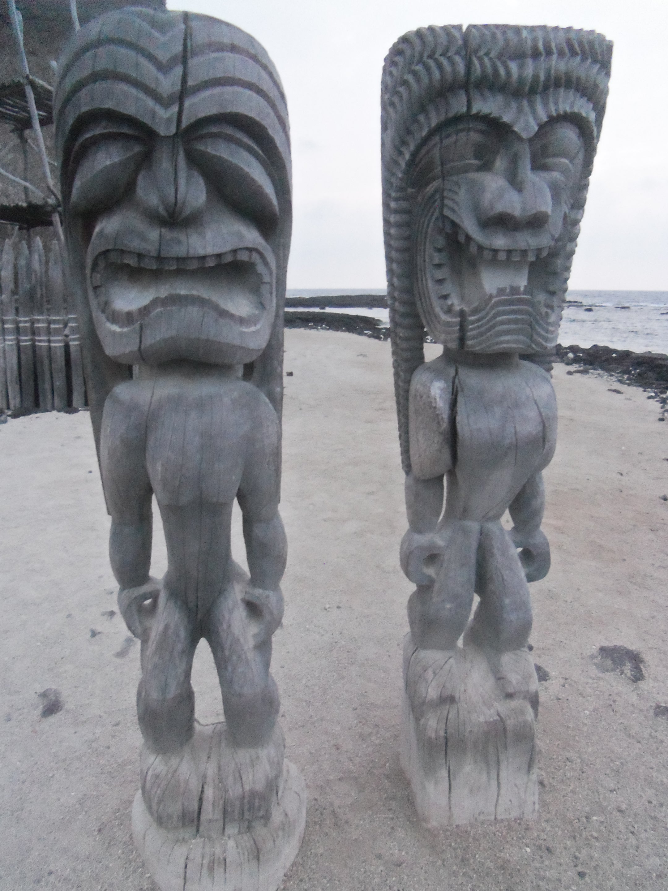 Hello all! Yep, you probably guessed it... I'm back in Hawaii for the third time in two months. They say the third time's the charm and since I'm so charming (gag, gag, cough, cough) I figured I'd give Hawaii one last time to truly prove itself as being the paradise it claims to be. This time I'm staying on the Big Island (actually called Hawaii). For those new to this daily blog, I also visited the islands of Maui and Kauai recently. This island is so big I'm actually staying in two different places to more easily cover it all. I'll spend the first 6 days or so on the western side in Kona and then the last 3 days I'll spend over in Volcano National Park trying to see some live hot lava as it's flowing from the volcano. Should be cool. This place I'm staying at a little south of Kona is really cool. It's a little cottage/cabin on a coffee plantation and they also grow fruits. The owner left me some apple bananas (smaller bananas with an apple like flavor, an avocado and a papaya, all picked fresh today (see pic). How cool is that! My flight over was also a winner. I got an exit row aisle seat for both legs of the trip which was especially nice on the 6 hour flight from Phoenix to Kona. Not too shabby for a free standby ticket! Since I got here in the late afternoon, I didn't have a lot of time to explore since I had to meet my landlord and check in. I did venture down to a national historic park that was near my place. It was right on the water and had some really cool Hawaiian historical buildings and statues. I took a picture of a statue of a man and woman that someone said was Barrack and Michelle Obama (just kidding!) Tomorrow I plan on exploring around in the morning and going deal sea fishing in the afternoon. Hope I reel in a big one! Hope everyone is having a good week so far. Jeff