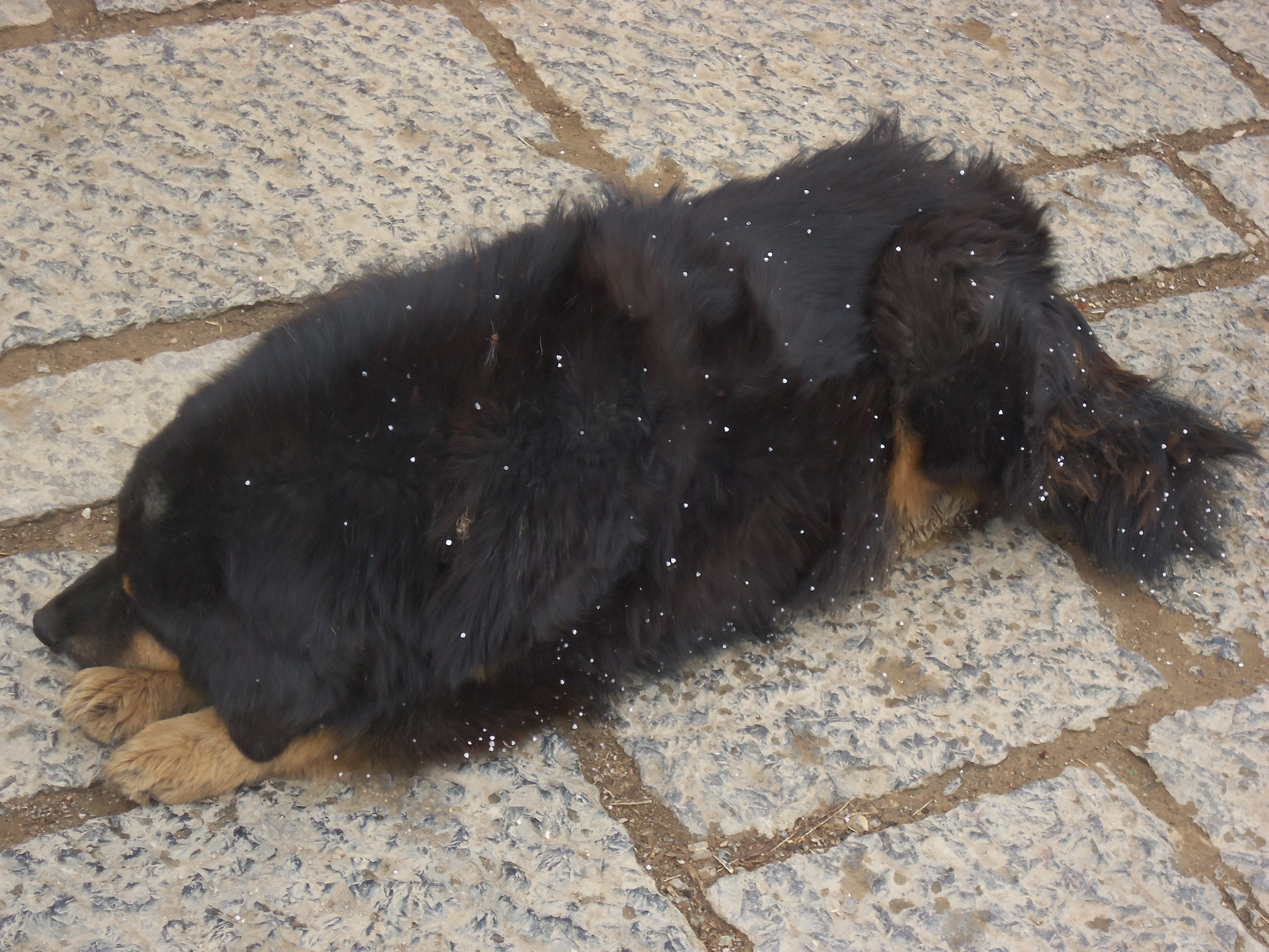 Well I got into Beijing safely Sunday evening and I guess since so many of you asked me to bring you back some of the sheep thingies, I'll venture over to the Night Market to pick up a gross (literally!) of them. I'm really surprised some of you said you are going to serve it on Thanksgiving Day, but to each his own!! (OK, enough of the potty humor!) Nice little touch before I left Yangshou. And I swear I didn't say a thing to my guide Amy about my fixations on Buddhas this trip, but she had arranged a car service to the airport for me and so she showed up to see me off. Well before I left she said her and her friends had enjoyed hanging out the night before and as a small gift, they got me a bracelet with all these Buddhas on it! And she said it's for long life and good health! I didn't have the heart to tell her I already had been given 100 years by the Buddha at Longevity Hill so who knows what this will do... 150???? LOL. Nothing real eventful today. Planes were on time. Hostel (I tried a different one in Beijing for just this night) is nice. Probably just going to kick back and relax tonight. My flight on Monday does not leave Beijing until 5:30 PM so I'll have a good chunk of the day to walk around and explore one last time. What's wild about the time difference is that I leave here Monday at 5:30 PM and arrive in Charlotte at 9:30 PM but I will have traveled about 20 hours in duration. Thank God for the "No Jet Lag"pills I've taken in the past. They worked for me on the way over here and on my trip back and forth to Australia. You can get them at www.magellans.com. I swear by them. So since I didn't have any fun pictures from today, I thought I'd share a couple of some of the Chinese animals I met along the way. Both were taken in Shangri-la. One was just a dog with some snow flurries on his coat and the other were some horses with all kinds of Tibetan prayer flags all over them as well as some silk banners that the Tibetas place on things for good luck. So I have to again give a shout out to my Steelers and Panthers! I heard there's a contingent from St. Louis in for the Panthers game so the Big Cat Tailgating should be in prime form! Chug that Panthers juice and go out there and bring back a victory for the Black and Blue (OK, and do an extra shot for the Steelers Black and Gold as well!). Hope everyone has a great Sunday! Jeff PS: I'll be sending one last email tomorrow to finish off my trip (OK, stop cheering!)