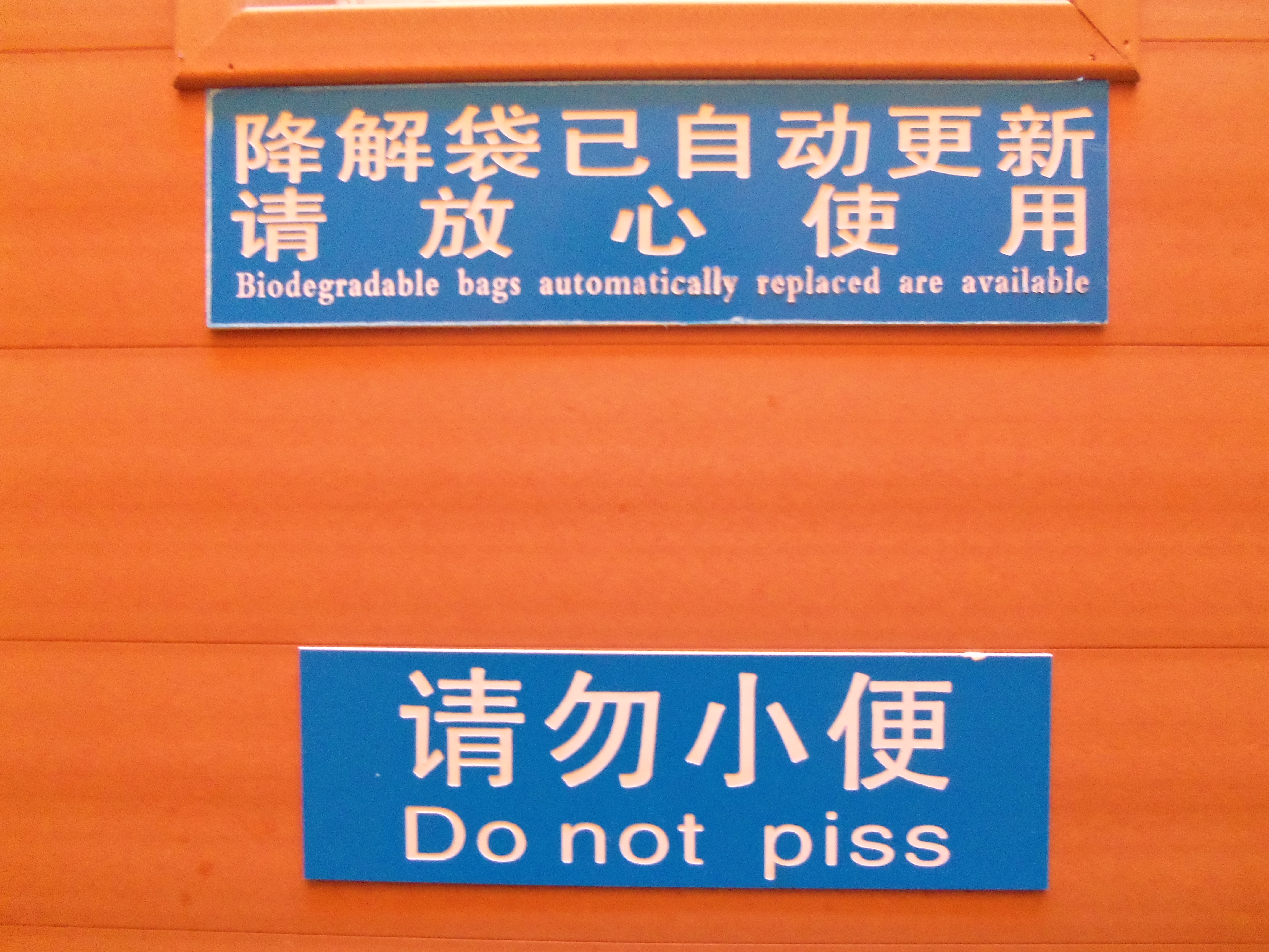 Well folks, I figured if I was traveling in China for 30 days I was bound to hit at least one travel glitch and I did today, but one thing I've got to give the Chinese airlines, when they mess up, they do a great job of recovery and customer service. So here goes today's travel tale... I get to the Chengdu airport in plenty of time for my 12:30 PM flight to Lijiang. They normally board 30 minutes early so I had a feeling when we got to about 12:15 or so and no announcment that something was wrong. Well all of a sudden, all of these Chinese people start rushing to the gate desk. And I'm thinking, oh shoot, they must have cancelled the flight and they're all trying to ask questions and get connecting flight info. Nope... they announced that the flight was delayed and because of that, they were giving out a free lunch! Don't get in the way of Chinese people when free food is in store! No sirree. LOL. But I thought that was cool of the airline to offer a free boxed lunch and a can of Pepsi for everyone. Then about a half hour later or so, another mad rush to the desk. This time a bunch of them are asking questions and then racing off down the hallway. Of course I'm dumbfounded not understanding a thing and none of the airline people spoke english, so I'm wondering what's up. So this nice older Chinese woman keeps motioning to her young daughter toward me. They were nice enough to come over and the young daughter spoke english, so she explained to me that the flight was delayed indefinitely and to follow them and the airline was going to bus us to a hotel to wait until the flight was ready. Really, I thought?? That's pretty cool. So we go to this other desk and get a shuttle to a nice hotel where they give us all rooms and she explains to me that they'll call my room when the shuttle is ready to take us back to the airport. So, I decided to kick back and grab a nap since I had been up late the night before and got up early for the flight. It's now about 5 PM and my phone rings in my room and I'm all excited thinking the shuttle is here. Of course on the phone all I hear is Chinese that I can't understand. I just say "thank you" in Chinese and grab my stuff (thank goodness I only have carry on, not sure what would have happened to any checked luggage) and head down to the lobby. Well there's no shuttle and when I show my boarding pass to the lady she just smiles and says no, not yet. Here they called us down because the airline provided dinner! It was a nice hot dish of rice, chicken and vegetables and a drink. How cool is that! So I eat my dinner go back up to my room and hang out. They actually had a TV with an english speaking station so I caught up on all the news. Then finaly about 8:30 they call my room. At this point I figure the planes ready and luckily it is so they shuttle us back to the airport. So we all go back thru security and get to our gate and once again there's a mad rush to the desk (and I'm thinking, just learn to queue up people!) but then I realize why they're rushing... the airline is giving out CASH!! Yes CASH! 400 Yaun, which is the eqivalent of about $75 which is just a little less than the cost of the flight! The man at the gate this time seems to speak a little english and he apologizes profusely to me for the flight delay and hands me the cash. Again, how cool is that! So we get on the flight and it takes off and it's only about a 45 minute flight and of course they come on the loudspeaker and say in both Chinese and english that they apologize for the delay and they're offering a sandwich, chips and a drink. So in essence, due to a flight delay where they still got us out that day they gave us lunch, dinner, a late night snack, a hotel for 8 hours and $75 cash!!! You can't beat that for customer service! LOL. So because of all of that, I didn't get any good pictures today but I took a few funny ones a few days ago that I thought you'd get a kick out of. I know I was overdoing the sheep thingy humor but along those same lines, I wanted to share a little 5th grade potty humor. So if you show either of these two pictures to a 5th grader, especially a boy, they will laugh hysterically. I hope this brings out the 5th grader in all of you. Enjoy! Jeff PS: I made it safely to Lijiang but it was too dark to see much. Gladly it was not too cold and this was at 11 PM when I arrived so hopefully it won't be too bad. I hear it is beautiful so hopefully tomorrow you'll get to see some more beautiful scenery!