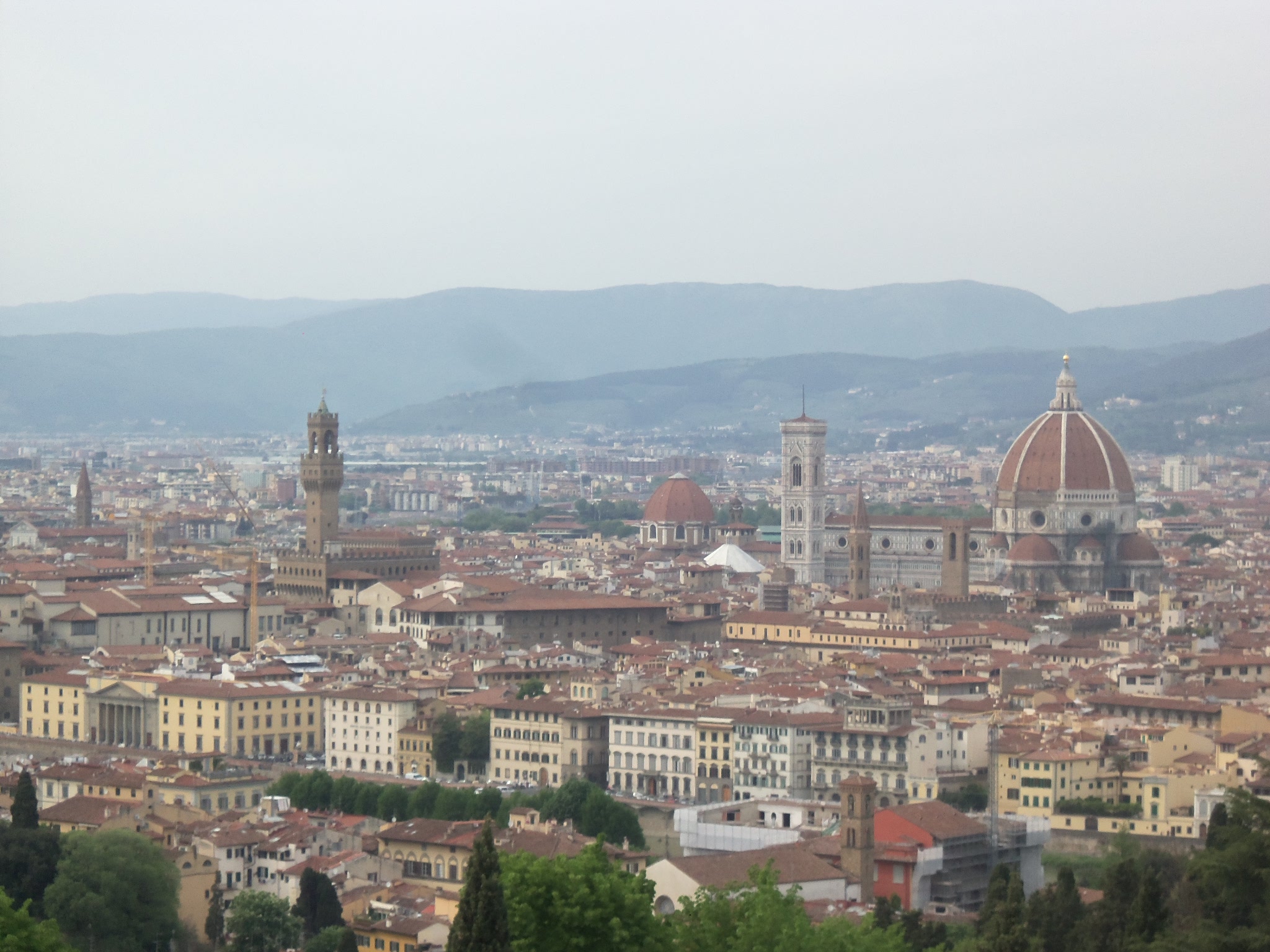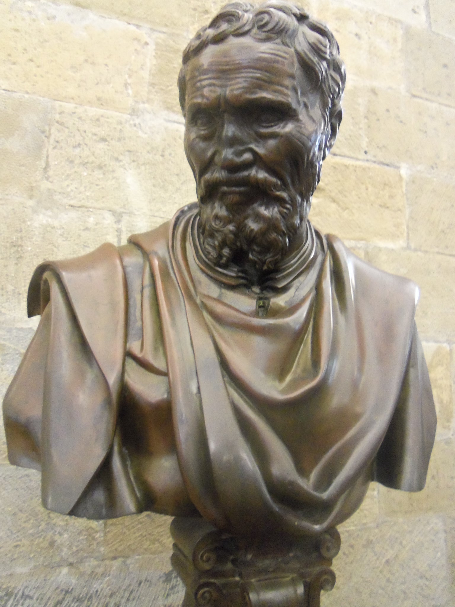 Well I really did get my culture on big time today and also snuck in some religion as well. First for the culture... I went for the trifecta and started the day out early and hit the big three museums. In sports, this would be like going to the Super Bowl, World Series and Stanley Cup all in one day. I started out with the Galleria dell'Accademia, which it's most famous work is Michelangelo's David. You weren't supposed to take pictures but I snapped a quick one of the big guy. It's a really powerful piece in person with his eyes looking so intense and the hand holding the stone he used to slay the giant seems overly pronounced. There were also these unfinished sculptures by Michelangelo called "Prisoners" that were really cool and made it look like the bodies in the marble were sort of coming up out of water. I also included a picture of a bust of Michelangelo. OK, he was a great artist, sculptor and architect but a lady's man he was not! Rumor has it that he got his nose busted in a fight with Leonardo DaVinci but I ain't buying it! LOL. I then went to the Uffizi Gallery which probably has the greatest collection of Italian paintings anywhere in the world. The paintings start with the Florentine Middle Ages thru to the Renaissance and beyond. I didn't take any pictures of the paintings but I did take two pictures of views from the top of the building. One is of the Ponte Vecchio bridge and the other is of the top of the Palazzo Vecchio with it's turret and shields on the walls. That's a cool building. I then ventured over to to the Bargello Museum which is pretty much a sculpture museum. Lots of great work by Donatello and Michelangelo as well as treasures from the Medici family who were the power barons of Florence. So I not only got my culture fix, I got a new found appreciation for my Italian heritage. I mean really... back then, all these Italians were doing great things... Michelangelo, Leonardo, Galileo, Amerigo Vespucci, Christopher Columbus, heck even Machiavelli! So what were all you non-Italians doing??? Geez! LOL. After a little break, I headed out to the "suburbs" a little and went up to the Piazza Michelangelo, where I included a view down into the city, and I also went up to the cute little church called San Mineato. Right when I got there they were starting a mass and it included a group of Gregorian monks chanting in Latin! So I stayed for it. I mean if you don't get moved by that you don't have a spiritual bone in your body. It was actually kind of eerie sounding with the chanting in Latin. So again, watch out for a major lightning storm with me being in the holy house for that long!! 🙂 Hope everyone is enjoying their weekend!
