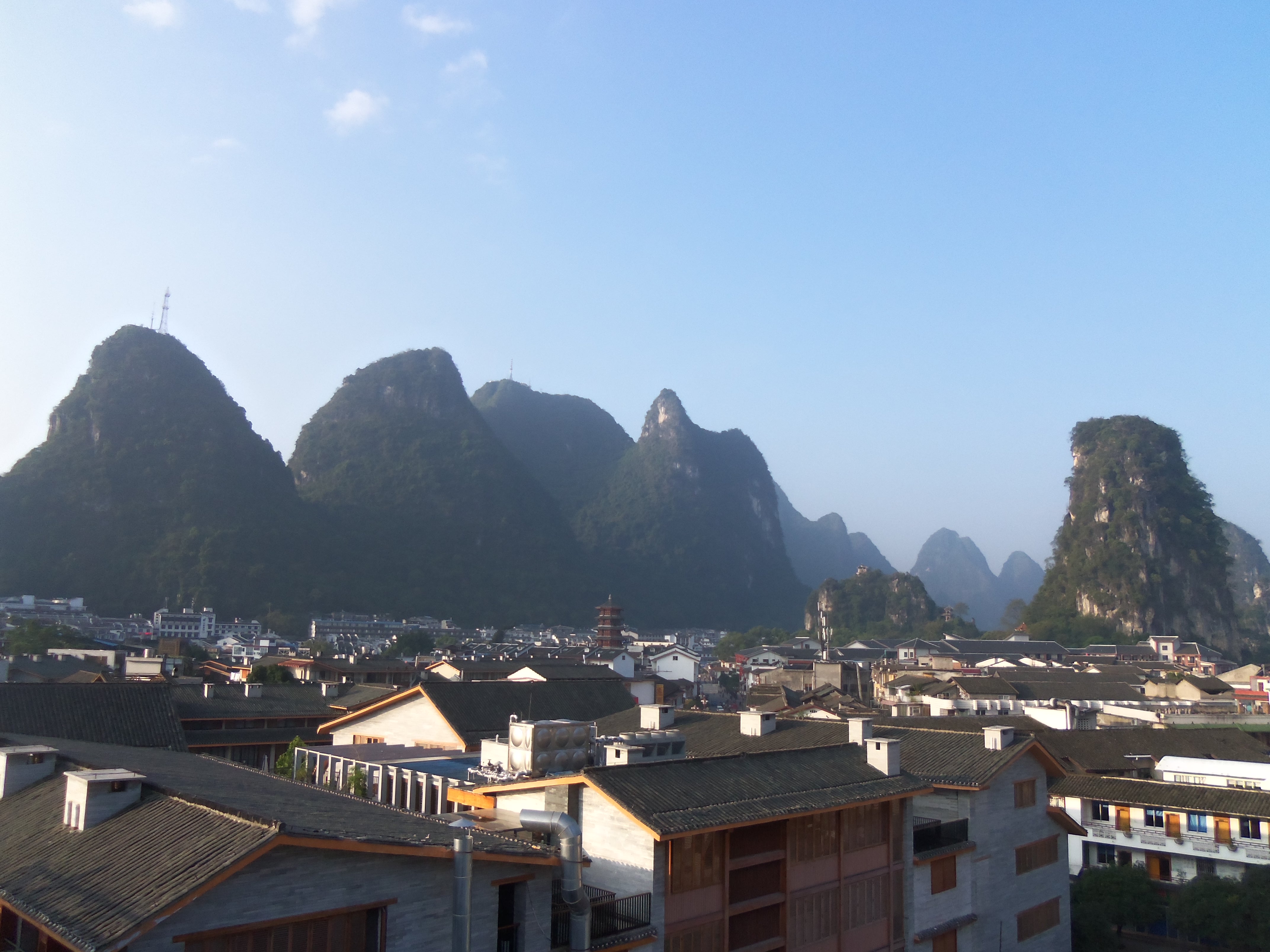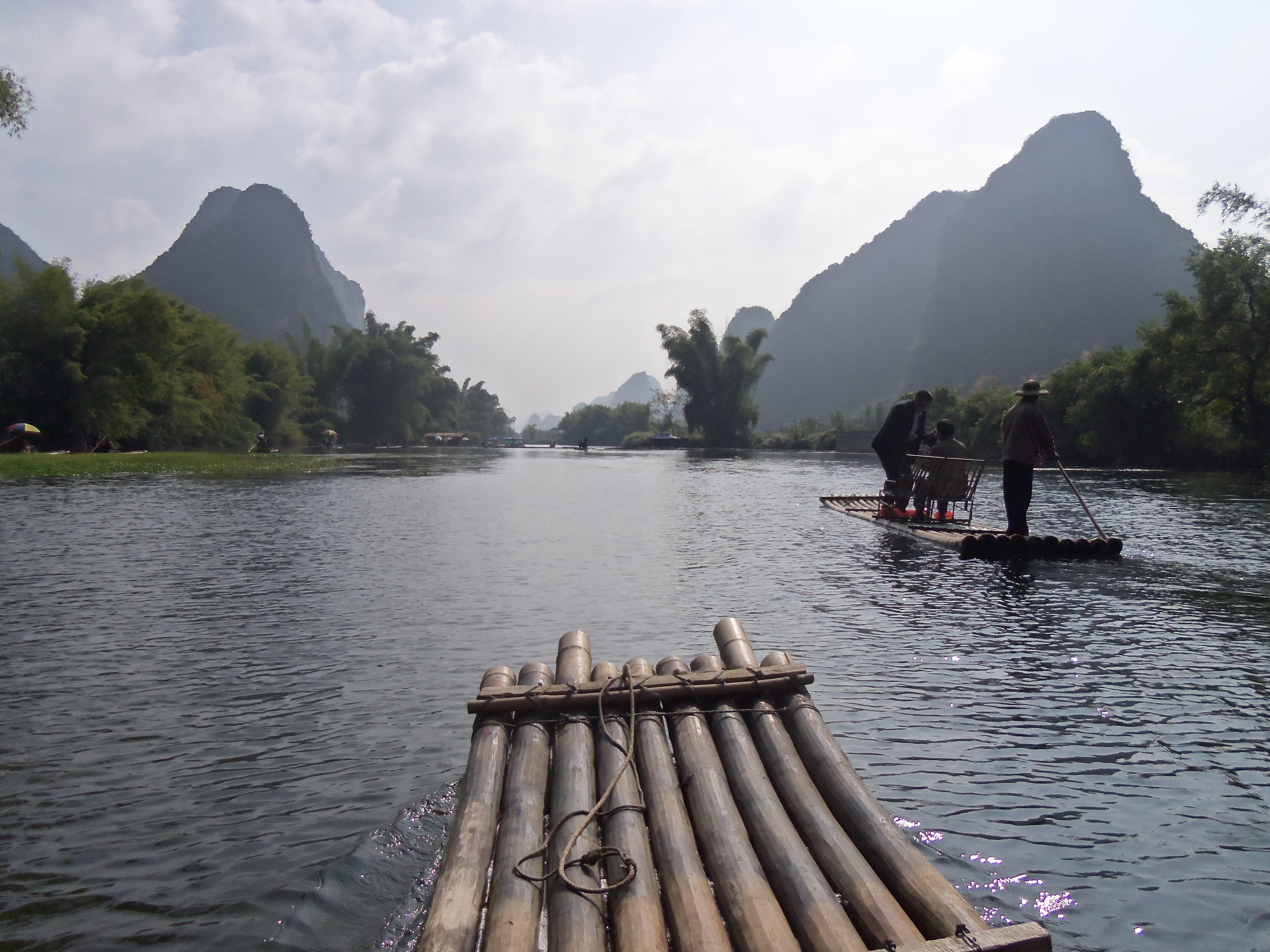 Well, if I'd had known the personal guides were this cheap and this good, I would have gotten one in every city! Once again tripadvisor.com steered me right and my guide Amy is the best. She's probably about 50 years old and has lived in Yangshou all her life. She also speaks fairly good English. She picked me up at 9 AM and we walked over to rent two bikes for the morning. We then set off to explore the countryside for about the next hour and a half. This is place is beautiful with these "mountains" cropped up all around the town. They're these limestone structures called karsts that happened many years ago after a bad earthquake and flood. It makes the whole area very spooky and sort of surreal looking. Kind of like being on a movie set. So as luck would have it (I still think that Big Buddha is a little ticked), I get a flat tire but luckily all along these bike trails are these old (and I mean like 80 year old) guys that fix your flats and this cute little guy takes his time taking the tube out (it had a hole in it) checking oit for leaks, etc.) all for $2! While he's fixing it, this little 90 year old lady keeps bugging me to buy these flowers she's selling. The whole thing is a hoot! After getting the bike fixed and cycling the countryside, we stop at a place along the Yulong river where I board this cool bamboo raft for a two hour "cruise" down the river while this driver with a long bamboo pole is pushing me along and steering the raft. I felt like a Pharoah floating down the Nile! Meanwhile, Amy has taken the bikes and gotten a truck to transport them to the end of my 2 hour river cruise. Very convenient! After the cruise, we hop back on the bikes and head over to this restaurant to grab lunch. As I always like to eat what the locals eat, I try their beer fish platter. A fresh fish (head and all!) cooked in beer with rice and vegetables. Very tasty! I didn't eat the head, since it was mostly bones, but the rest was great. We then start cycling some more and Amy asks if I'd like to see her village where she lives. I figure, how cool is that? So we veer off the road down this path and we get to her house which is a cluster of 4 or 5 little homes (in essence her village) all surrounded around some open famr land. She invites me into her house and we eat these pomelos (kind of like a grapefruit but several layers of skin to peel off. I get to meet her husband, who had just come in from working the fields (he's a farmer by trade) and she then shows me around the fields and she let me have some fresh kunquat and persimmon fruits right off her trees! I had never eaten either of those so that was really neat. We then pedal back into town and I take about a 2 hour break back at my hostel to just chill. We then meet back up for dinner and go to this local place almost right across the street from my hostel where they cook in these clay pots. Great food but very spicy! We then walk around the town in the area where no cars are allowed and lots of shops and restaurants. It was funny to stop and bargain with some of the people and watch them chase you down as you walk away continuing to lower the price as you keep saying no! We then drive over to this evening light show that the town puts on every night which describes the history of the town and a love story of two kids who wanted to marry but werne't alowed (sort of their Romeo and Juliet). Amy got me the tickets and got m,e to my seat and then I just met her after the show. So I get lucky and sit next to these 3 older women from Singapore who speak both English and Chinese. They were so friendly and were interpreting the Chinese for me throughout the show. They even had snacks which they shared with me (sort of sour fruits, but they were good) and then as it got cooler during the evening, they bring out this flask of some sort of Asian whiskey and ask me to have a drink with them, so... when in Rome! It burned all the way down my throat but it warmed me up quick! Thank goodness I had my bottle of water with me to chase it! After the show, Amy took me back and dropped me off at my hostel. So if you do the math, I paid her about $1.50 an hour for her services. That's incredible. Tomorrow morning she's picking me up early so we can catch a sunrise over the karst mountains. Should be awesome. Hope everyone is doing well and that your Thursday is off to a great start! Jeff