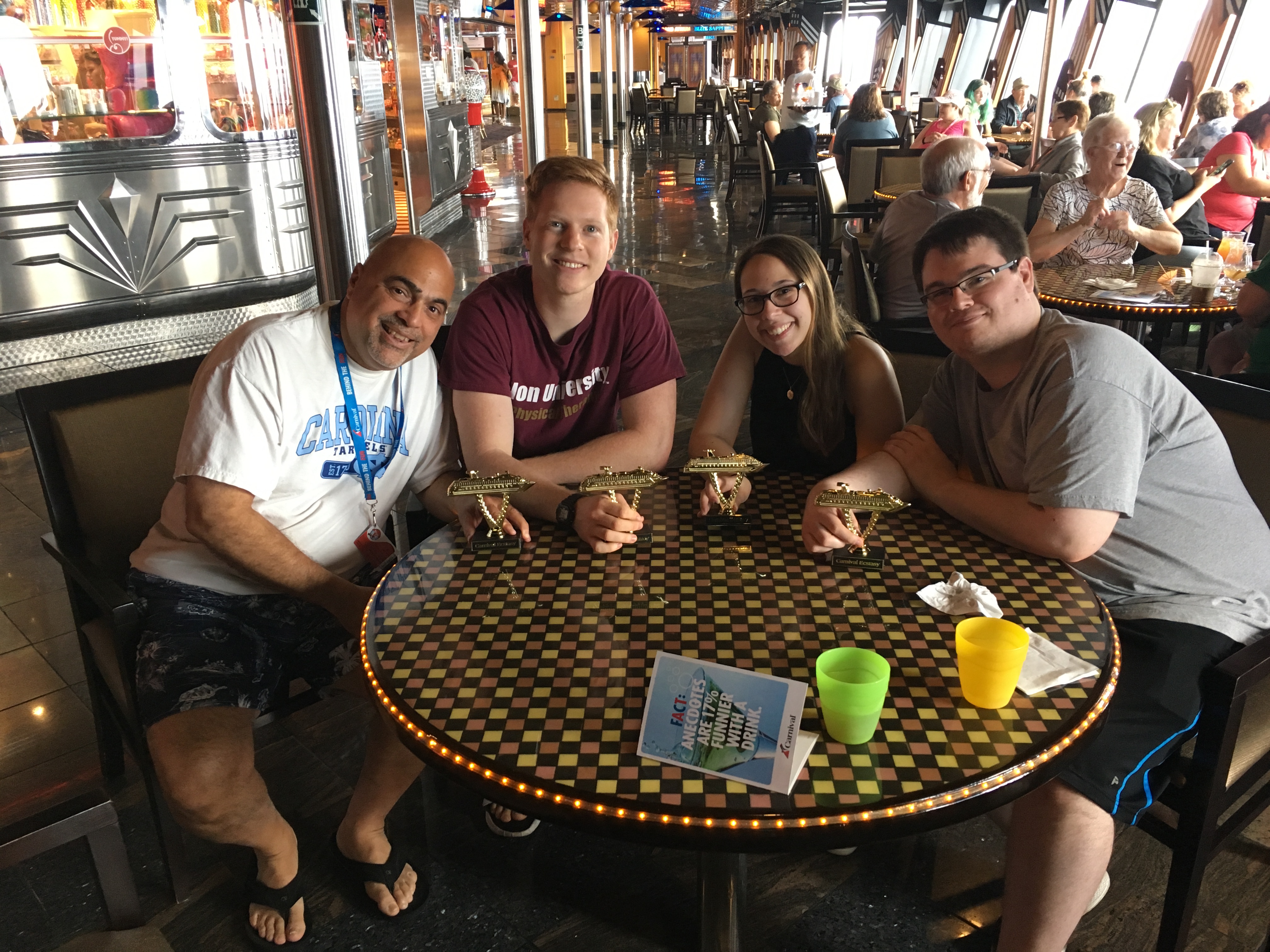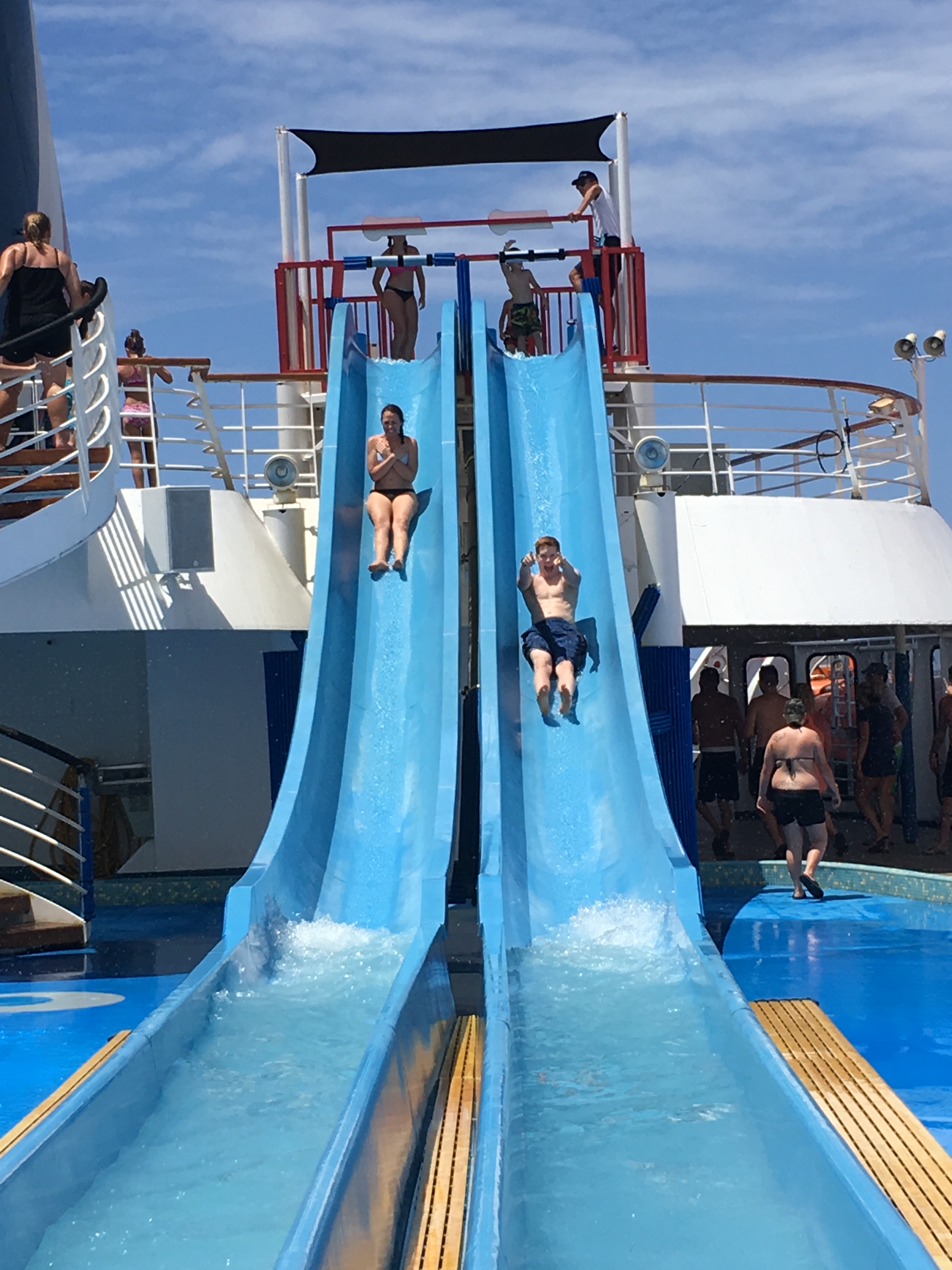 Here is a summary of a trip I took with my kids to celebrate my daughter’s college graduation. We all drove to Charleston and took the 5 night Carnival Cruise to the Bahamas. We spent a day at Nassau, a day at their private island and the rest at sea. In Nassau we went to Blue Lagoon Island and swam with the Dolphins, Sea Lions and Stingrays. It was a lot of fun and my favorite was the sea lions, they were so smart and playful! We enjoyed lots of games of Trivia on the ship (and won once!), watch karaoke most nights (Meg and Josh actually sang!) and of course ate lots of good food. It was a great time!! Enjoy!