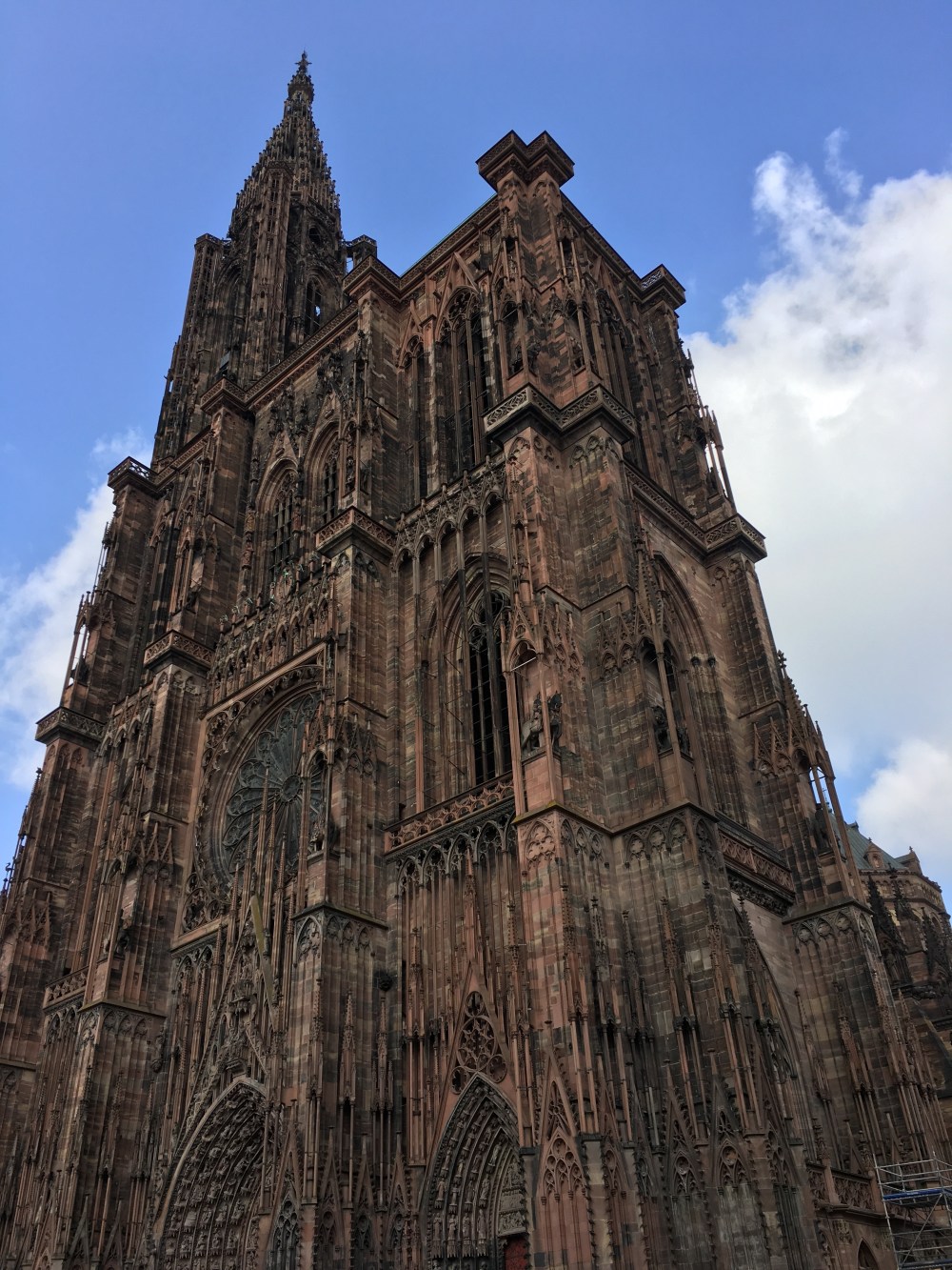 Of course I found all the churches in Strasbourg and there were 3 beautiful ones but I only shared a picture of the largest one which is the Strasbourg Cathedral (Cathédrale de Notre Dame). This church changed from Catholic to Protestant and now back to Catholic. The Cathedral was started in 1176 and completed in 1439 and at 466 feet the spire was the tallest in Europe until the mid-1800’s. The cathedral’s stained glass windows traveled a lot during World War II. Hidden by the French in southwestern France first, then carted to northern Germany by the Nazis, and finally saved and returned by the Monuments Men (British and American troops dedicated to returning art to its rightful place) after 1945.