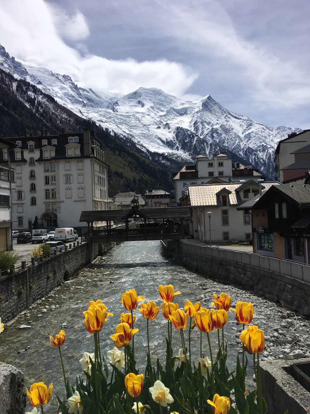 Chamonix (pronounced shah-moh-née) is officially called Chamonix-Mont Blanc and is the largest of the five villages lining the valley at the base of Mont Blanc. Located where Switzerland, Italy and France intersect, this town has always drawn an international crowd. Today about half of its foreign visitors are British – many have stayed and found jobs in the hotels and restaurants so almost everyone speaks English.