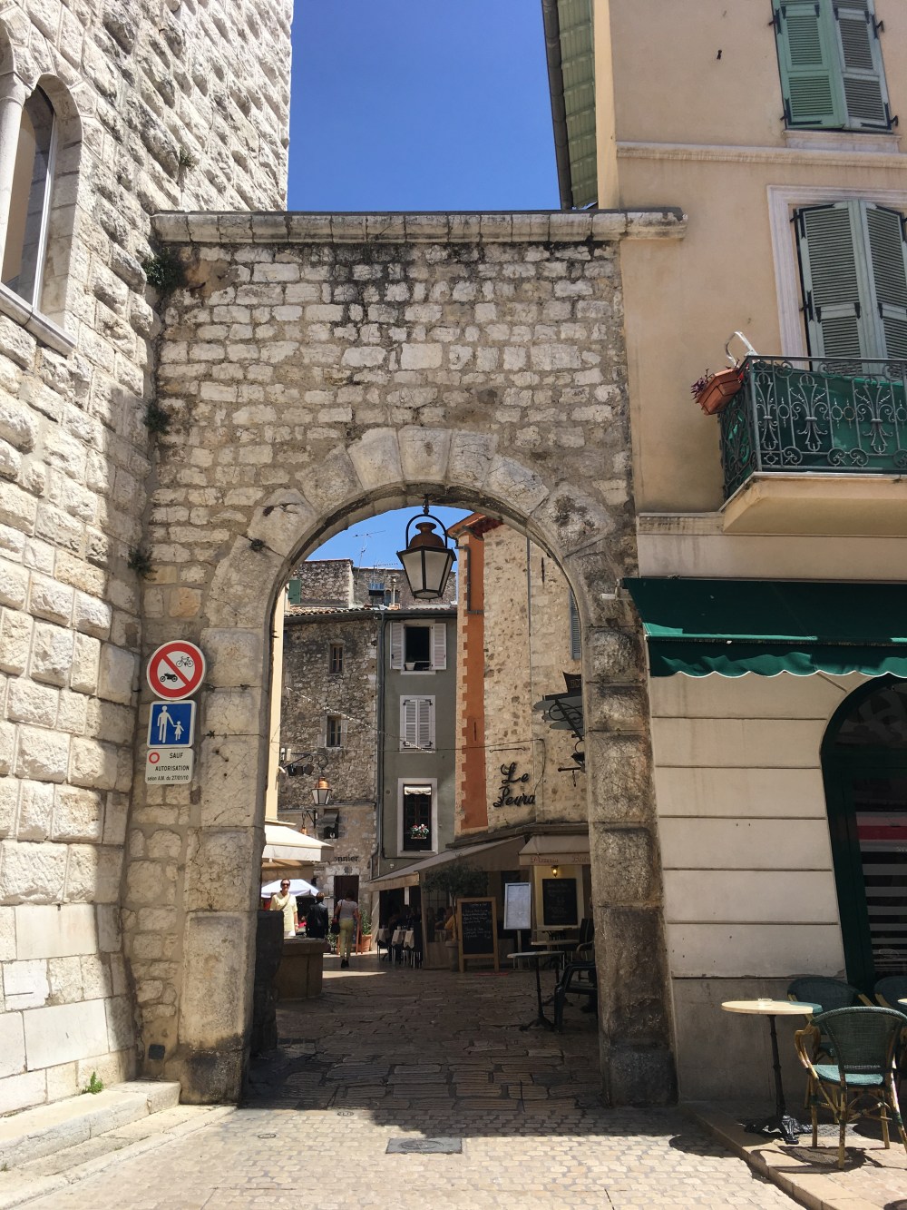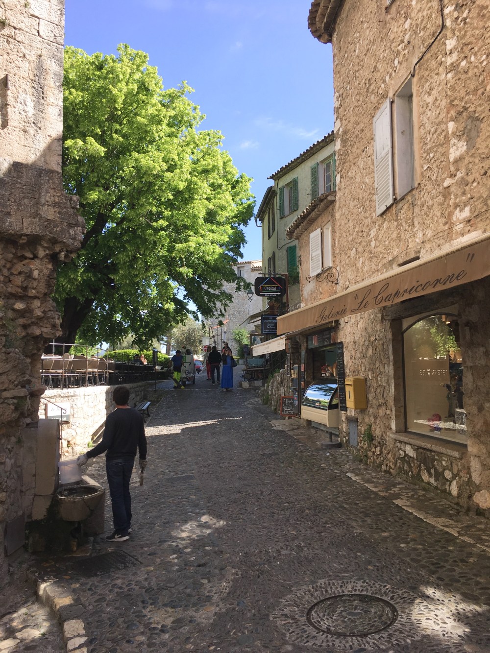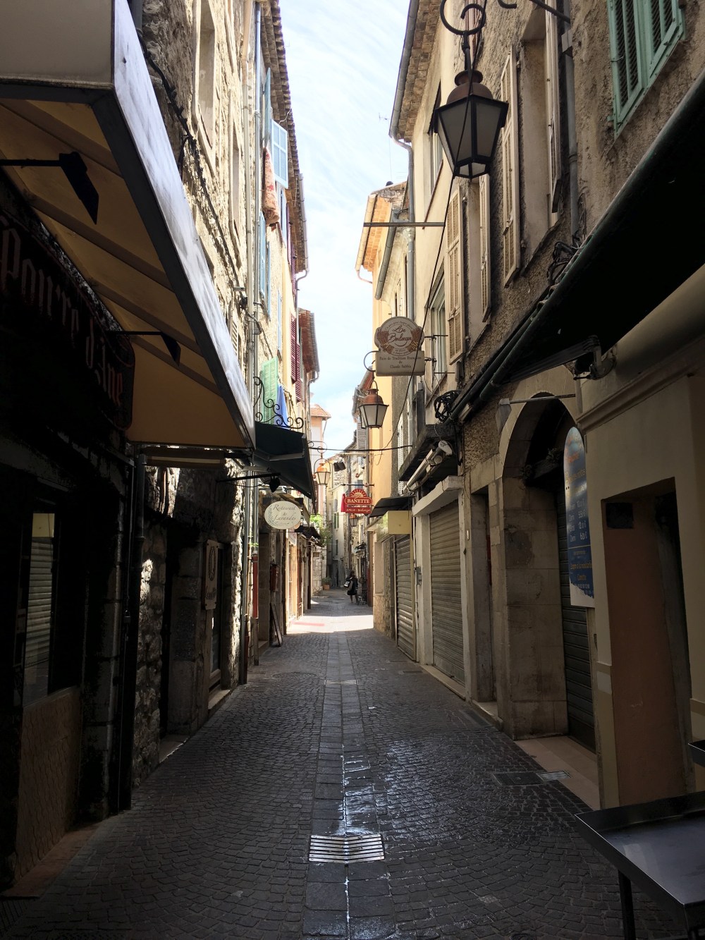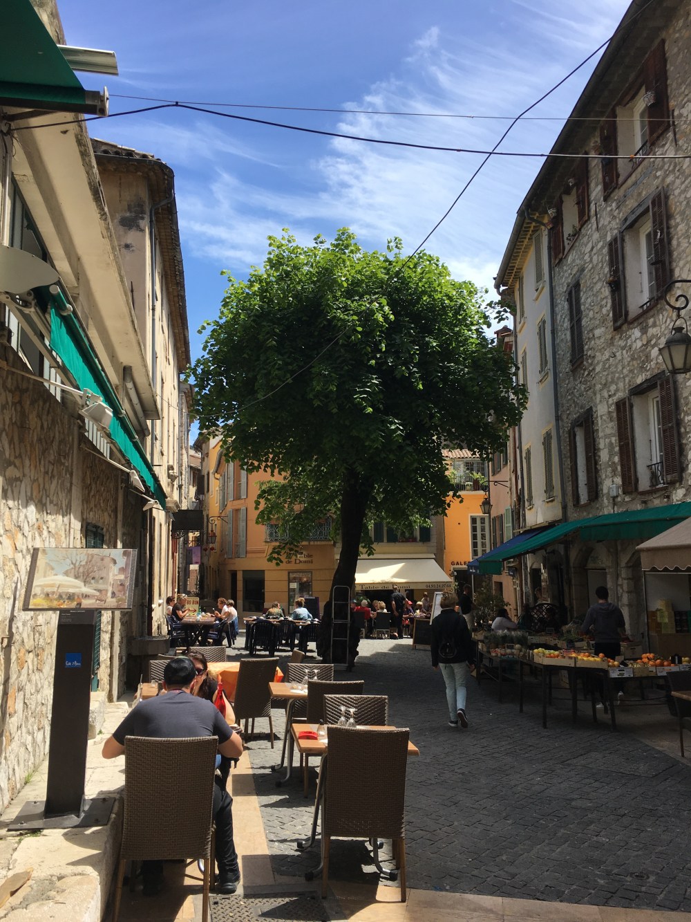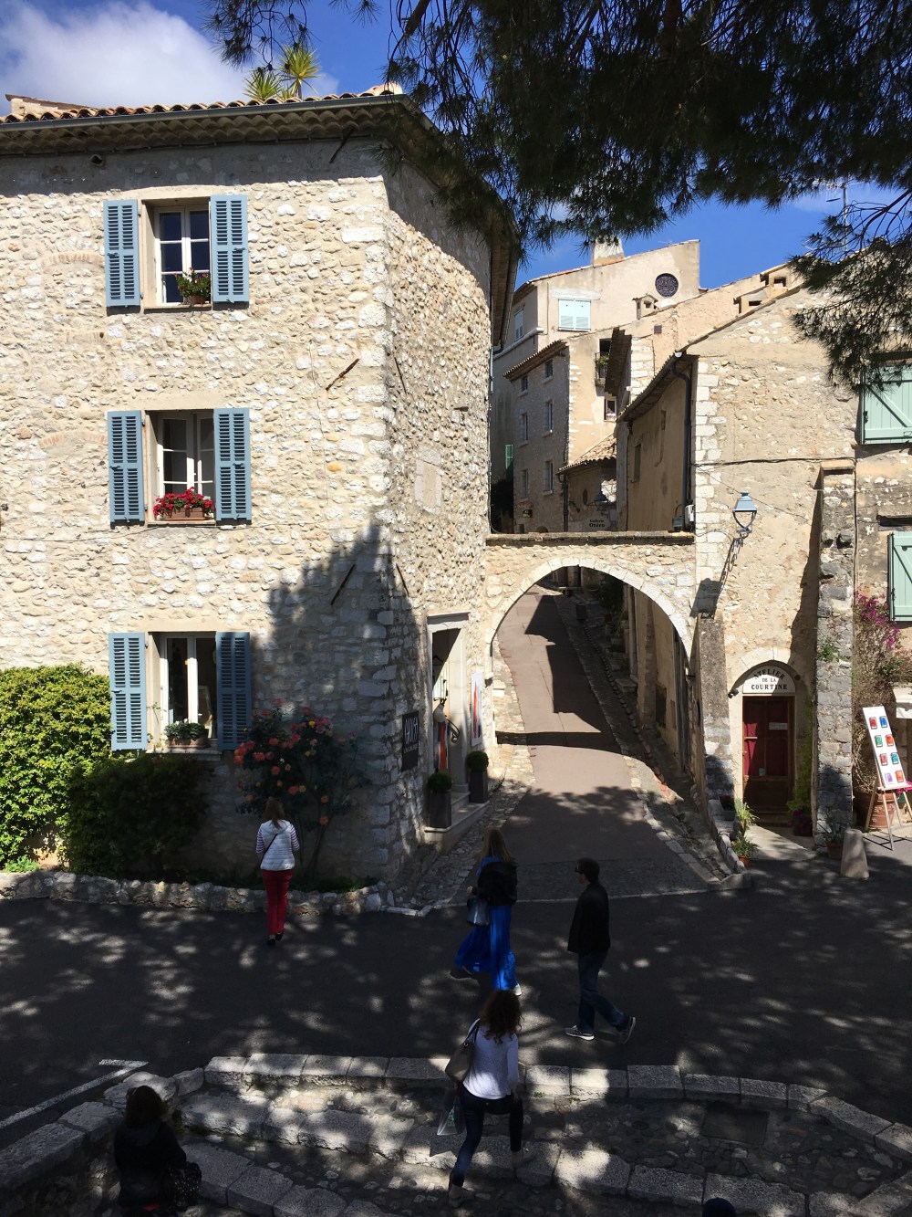 The pictures starting after the church are of the cute little (again walled) village of Vence. It was formerly the ancient Roman settlement of Vintium and subsequently became the bishopric (diocese) and seigneury (Feudal Lordship) of the Villeneuve Family. It too had lots of narrow alleyways and cool little squares where people were out eating and drinking. (I know it’s hard to tell these villages apart)! It felt like such a laid back village and as if I went back in time. Very cool.