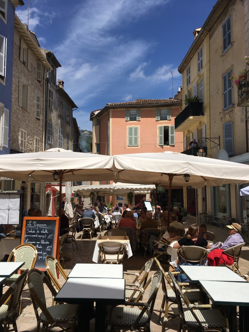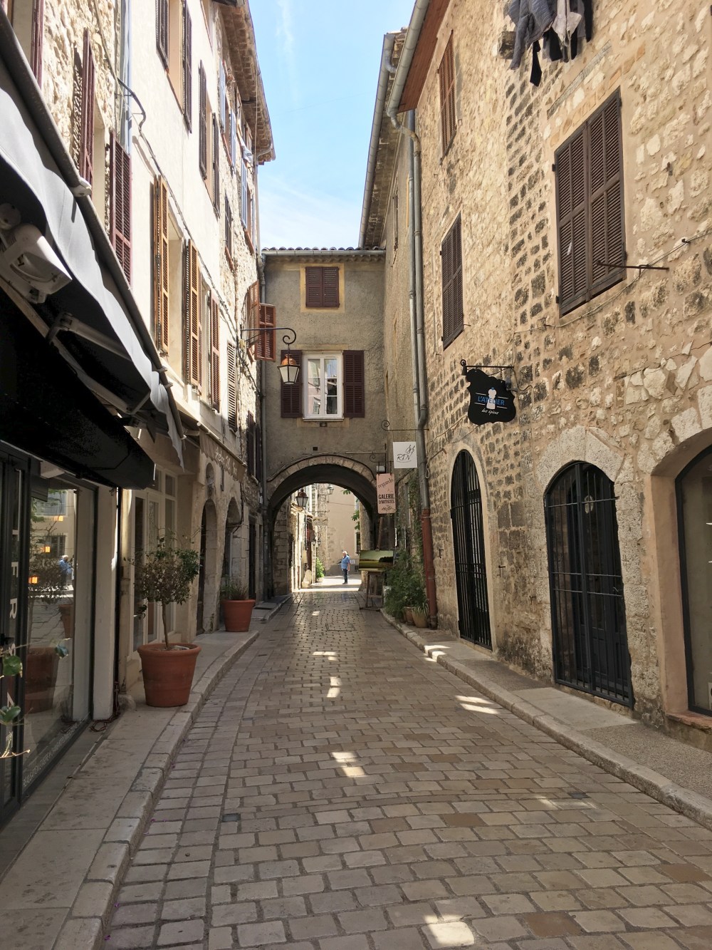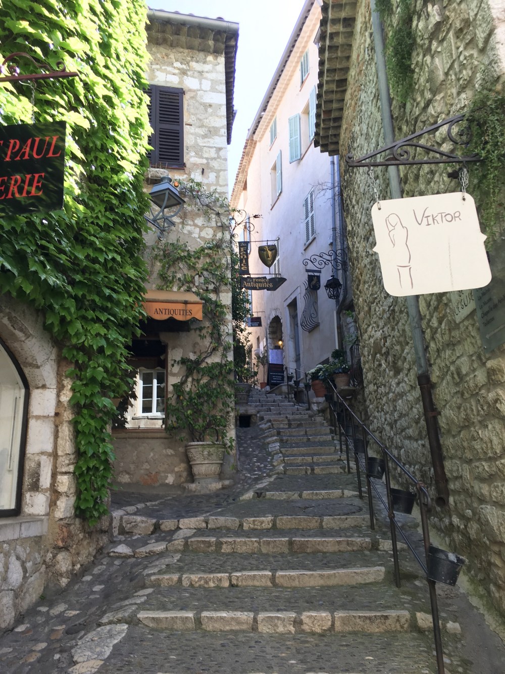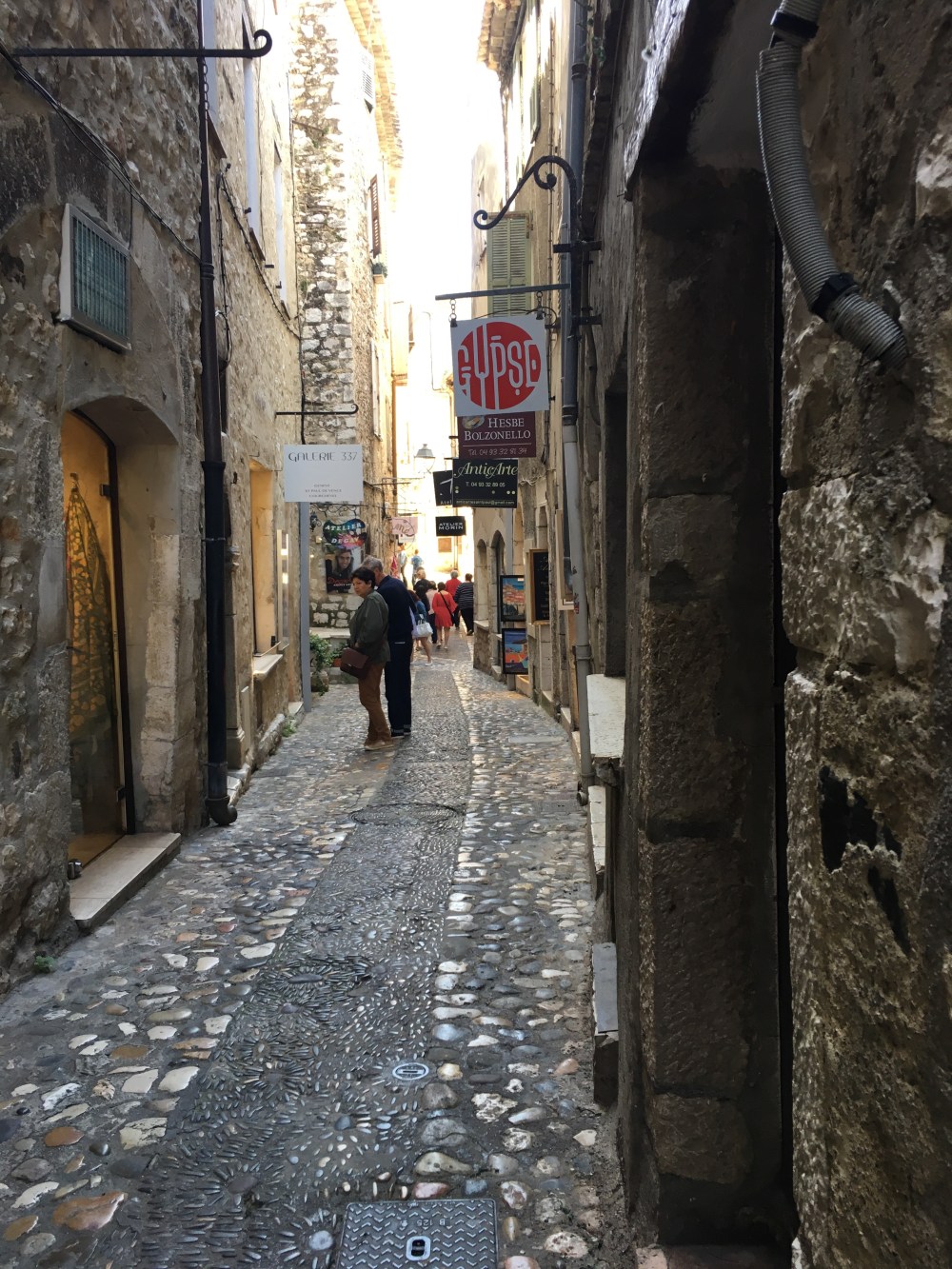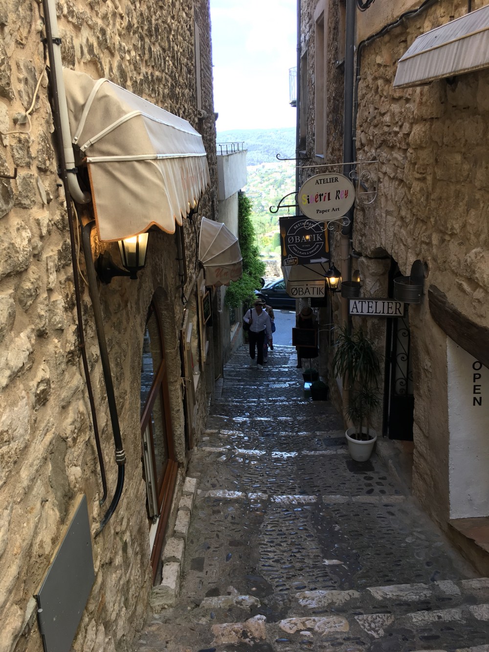 The pictures starting after the church are of the cute little (again walled) village of Vence. It was formerly the ancient Roman settlement of Vintium and subsequently became the bishopric (diocese) and seigneury (Feudal Lordship) of the Villeneuve Family. It too had lots of narrow alleyways and cool little squares where people were out eating and drinking. (I know it’s hard to tell these villages apart)! It felt like such a laid back village and as if I went back in time. Very cool.