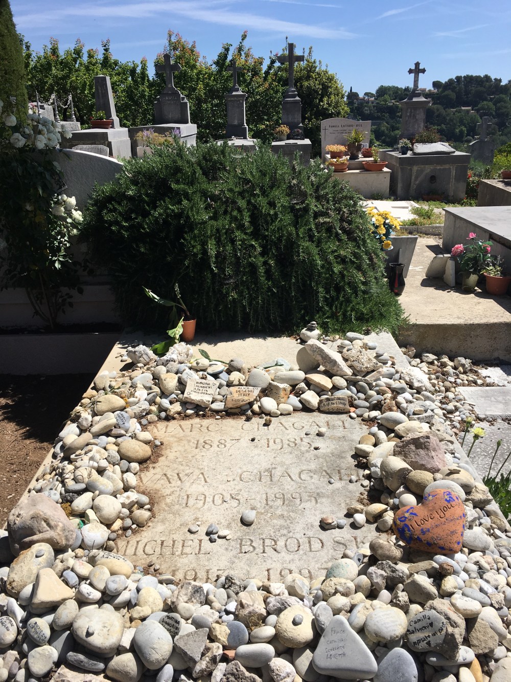 St-Paul-de-Vence was situated perfectly on this hilltop with views to both the Mediterranean Sea as well as the Alps. They say it’s the most visited village in France but it wasn’t too crowded when I was there. Many artists lived here over the years and painted here because of it’s vistas and great weather/lighting. Marc Chagall lived here and was buried here. I included a pic of his grave that had all the pebbles on it since he was Jewish. I took a guided tour thru the town and they explained all the buildings and history. The guide said back in the day before the Cannes Film Festival got so popular, actors would come here and hang out before the next party or interview they had since this is only about 30 minutes from Cannes. She also said Bill Wyman, former bassist for The Rolling Stones, lives here now and is often seen just hanging out at the local coffee shop. (I peaked in but didn’t see him!). American writer James Baldwin died here in 1987 as well.