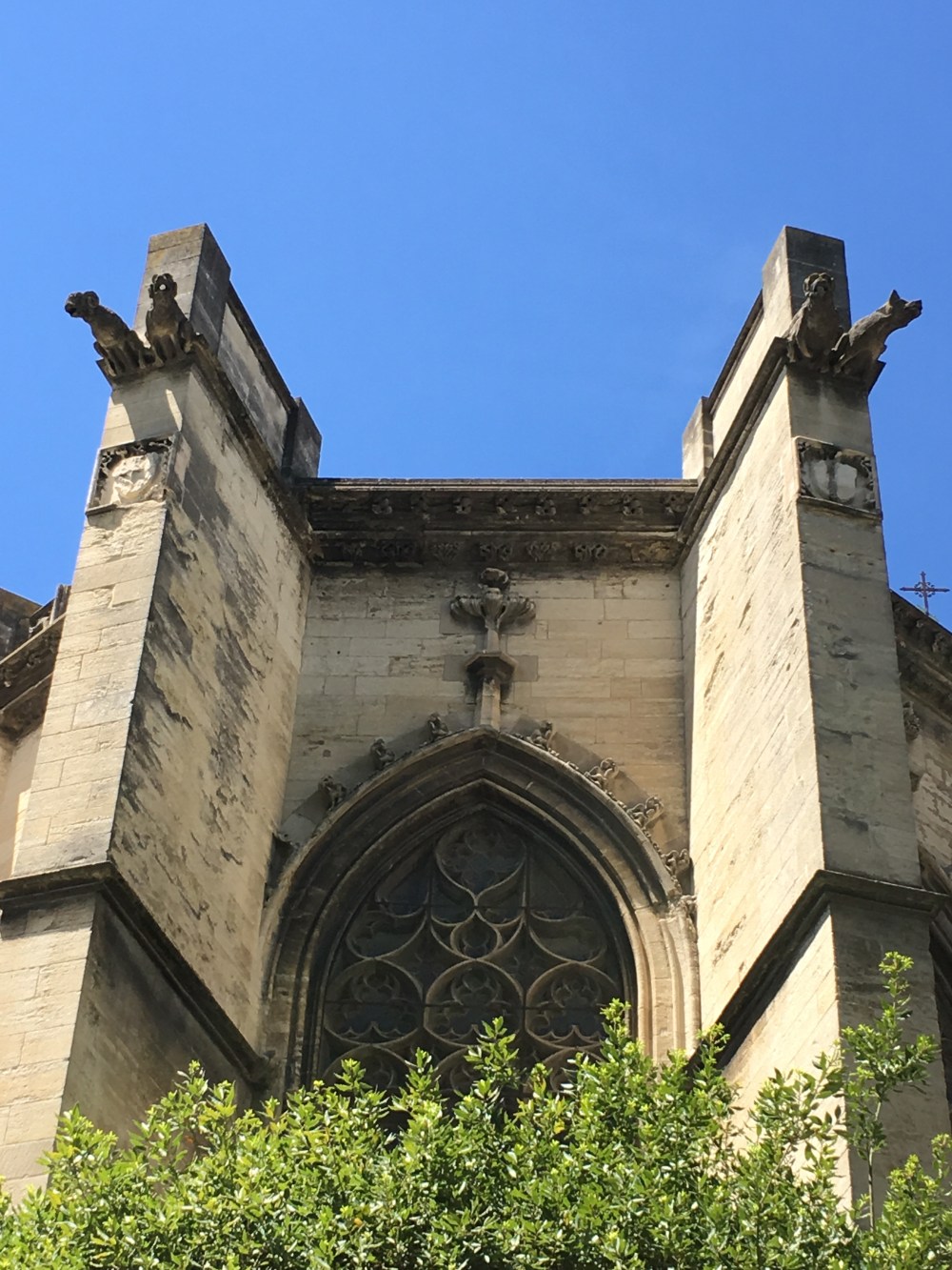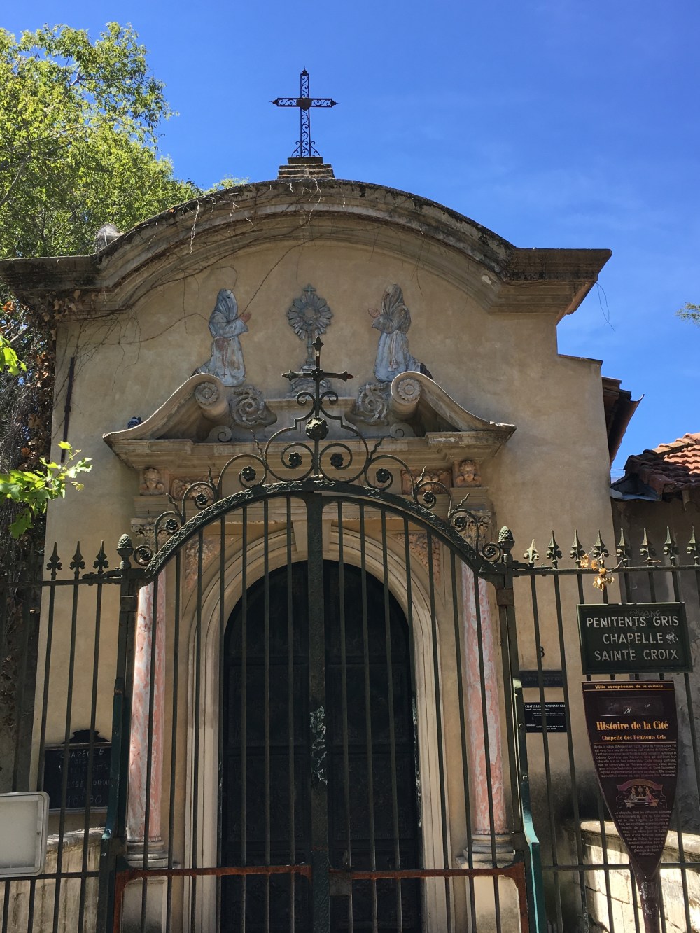 The pic of the small little chapel with the gate in front is the Grey Penitents Chapel (Penitents Gris Chappelle). The upper facade shows two men dressed up in robes and pointy hoods to do their anonymous good deeds back in the 13th century. While it might look a little like the KKK, these guys weren’t about racism but rather symbolized how all are equal in God’s eyes. And in the last pic, I liked the cool wolf like gargoyles coming off of the church.