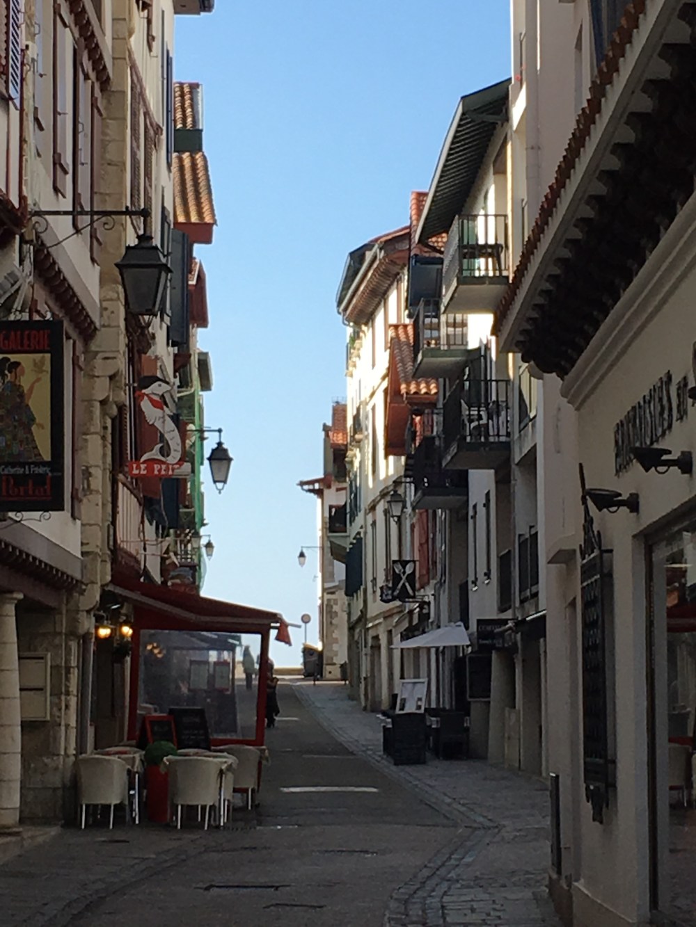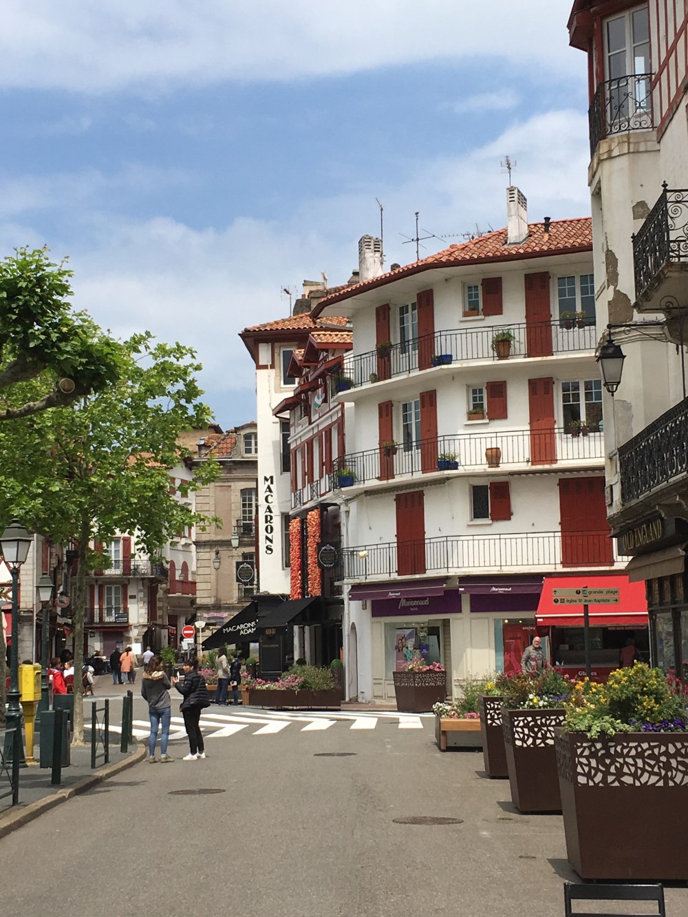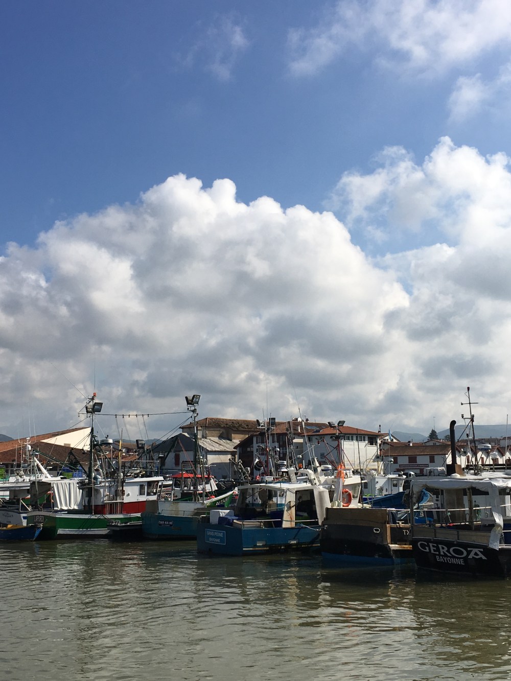Monday 5/20/19 – I love this little seaside village! St-Jean-de-Luz (san zhahn-duh-lews) sits cradled between its small port and gentle bay. And it’s got the Pyrenees mountains behind it. It’s technically on the Atlantic Ocean but there’s a crescent shaped bay that surrounds it. It used to make all its wealth from whaling, cod fishing and pirating, but now its main revenue is tourism. It’s a quaint little town where all the little side streets lead right to the beach.