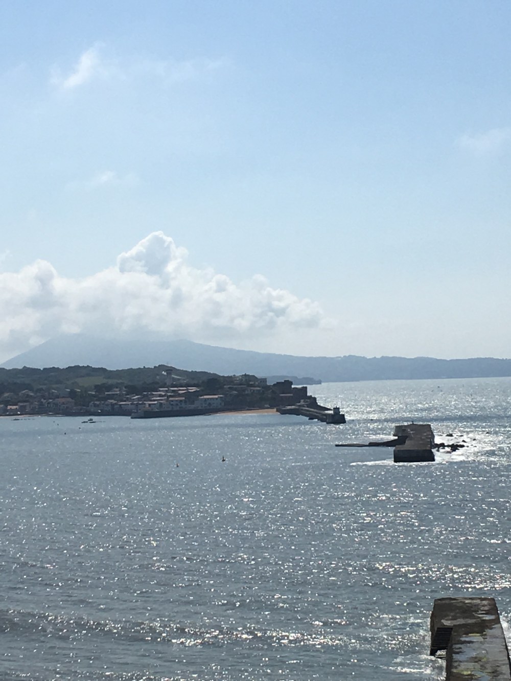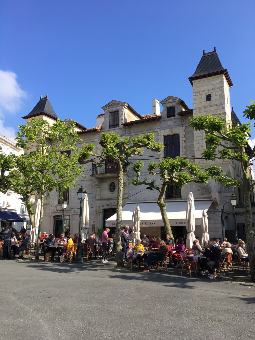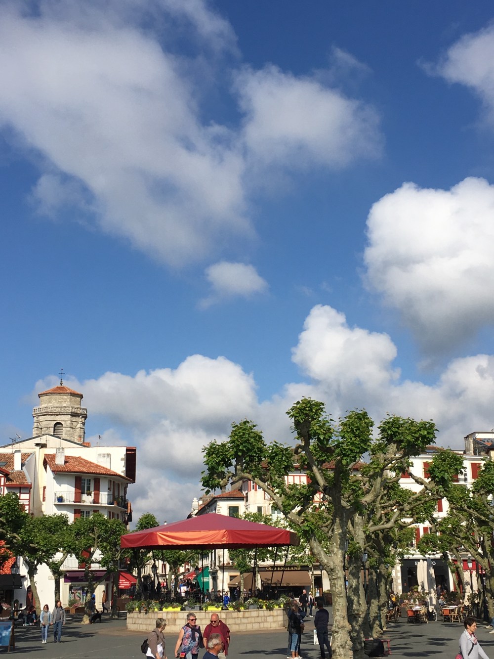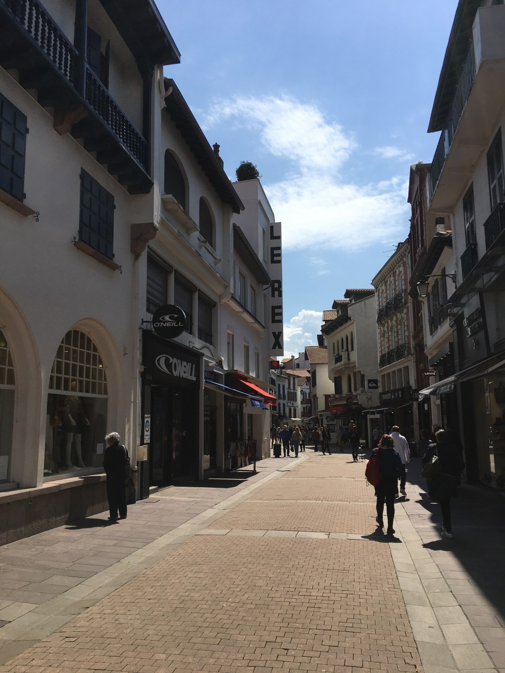 Monday 5/20/19 – I love this little seaside village! St-Jean-de-Luz (san zhahn-duh-lews) sits cradled between its small port and gentle bay. And it’s got the Pyrenees mountains behind it. It’s technically on the Atlantic Ocean but there’s a crescent shaped bay that surrounds it. It used to make all its wealth from whaling, cod fishing and pirating, but now its main revenue is tourism. It’s a quaint little town where all the little side streets lead right to the beach.
