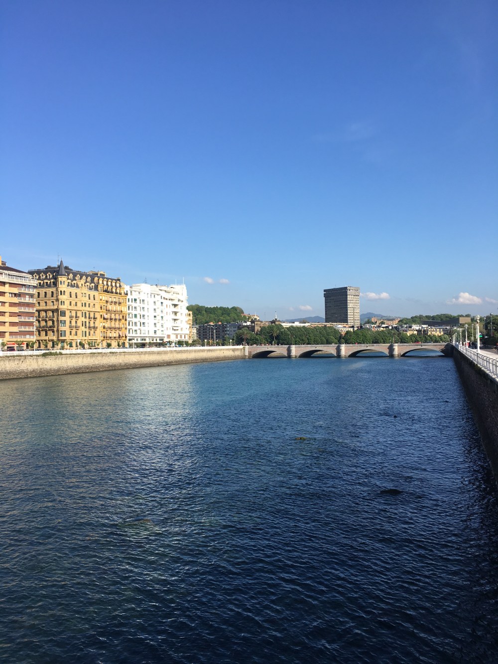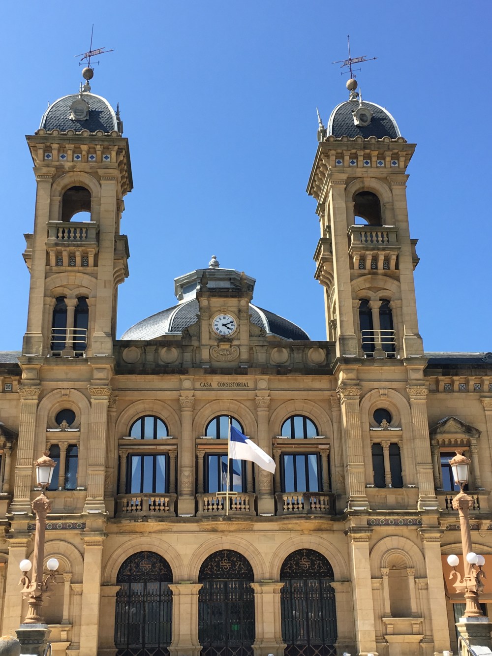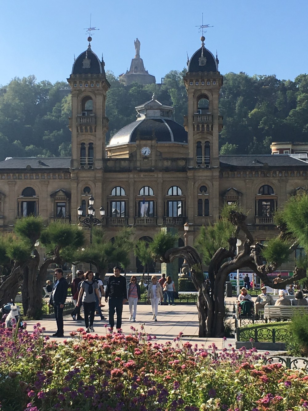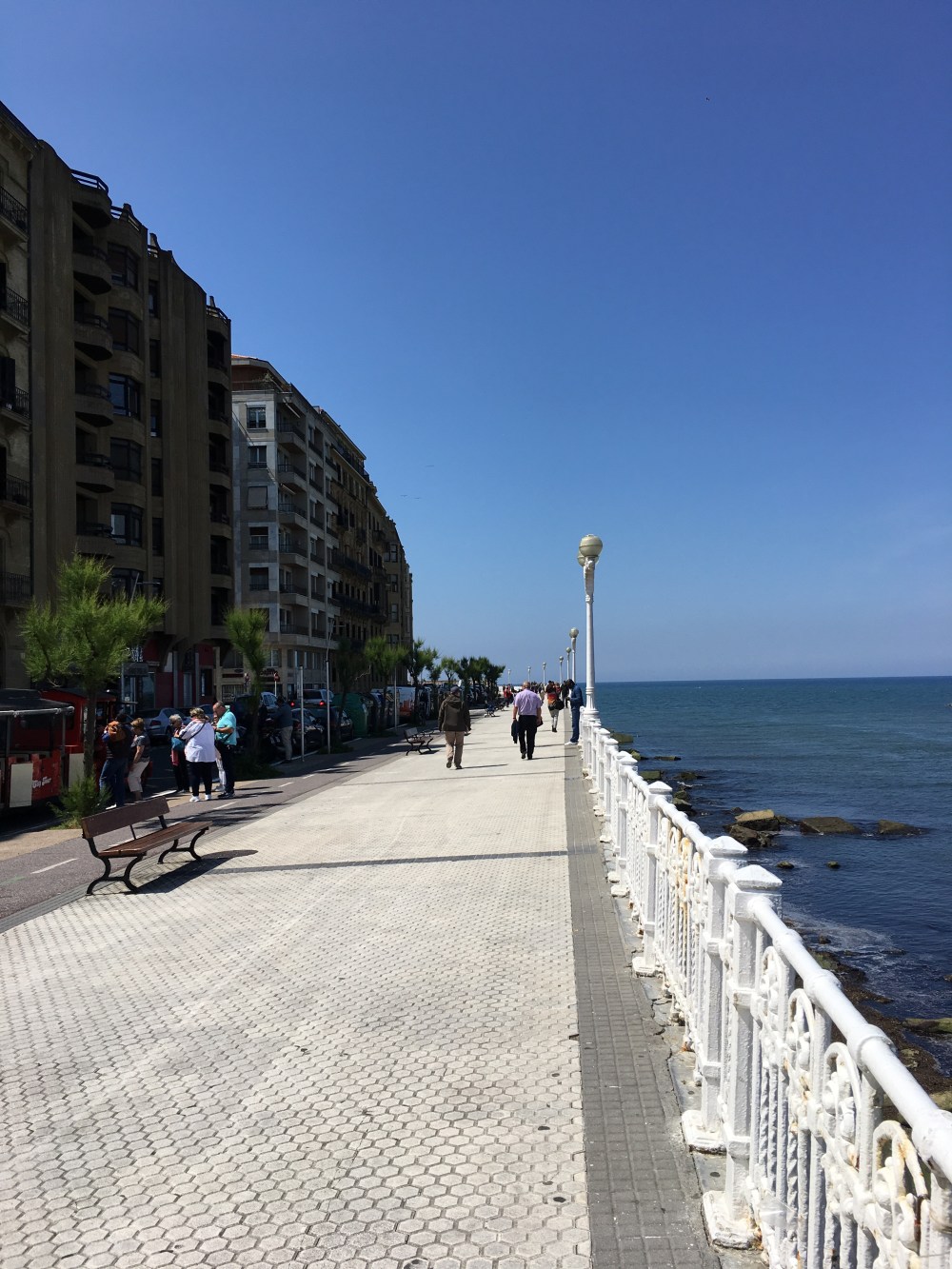 Wednesday 5/22/19 – So today I took the train from St-Jean-de-Luz to San Sebastián. And it’s interesting how you do it. You have to take one train to the French border town of Hendaye (more on that town later). Then walk out of the station and sort of “cross the border” into Spain to a different train station (50 feet away) to hop a train to San Sebastián. Well I had a “cultural awareness” moment when I crossed the border from France to Spain. On the French train, the people were all pretty quiet and subdued. When I got on the Spanish train the people were talking very loud and this guy started playing a guitar and belting out a tune. I just thought it was interesting to see the two different cultures back to back.