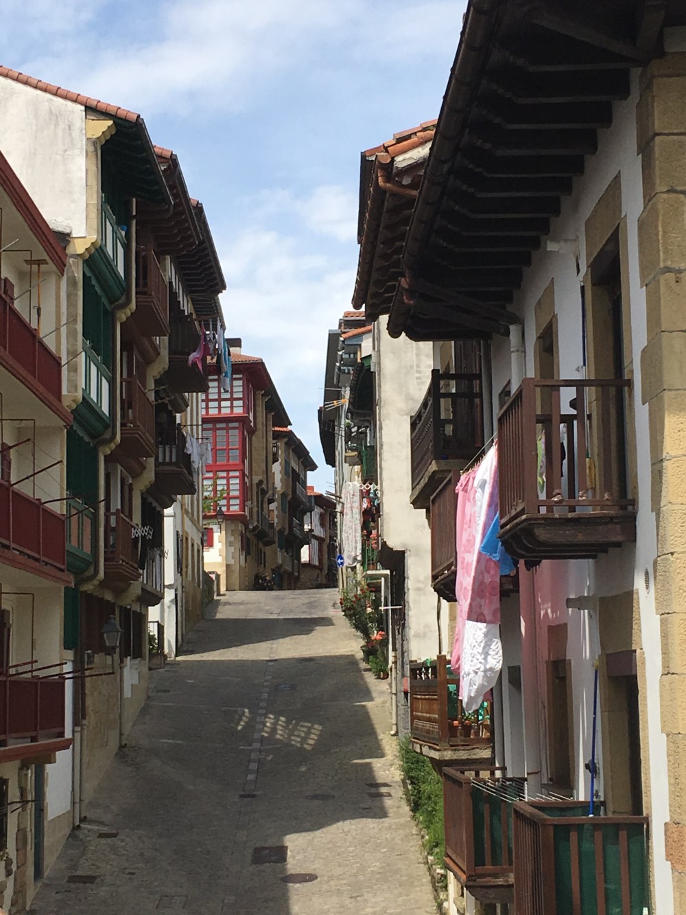 The old town is this jumble of cobbled stoned streets and narrow alleyways. It was funny to see everyone having their clothes hung out to dry. The port area is beautiful with mountains in the background. And San Pedro street is the old fisherman’s village with tall, narrow, colorful houses similar to Pasaia. They say that the bright color of the owner’s house is the same color of his boat so he’d make sure he used up all the paint. Crazy!
