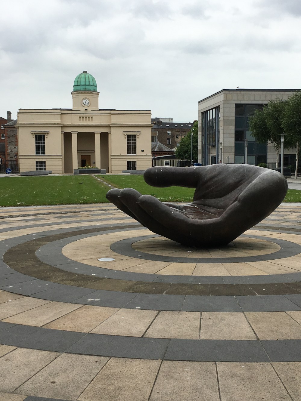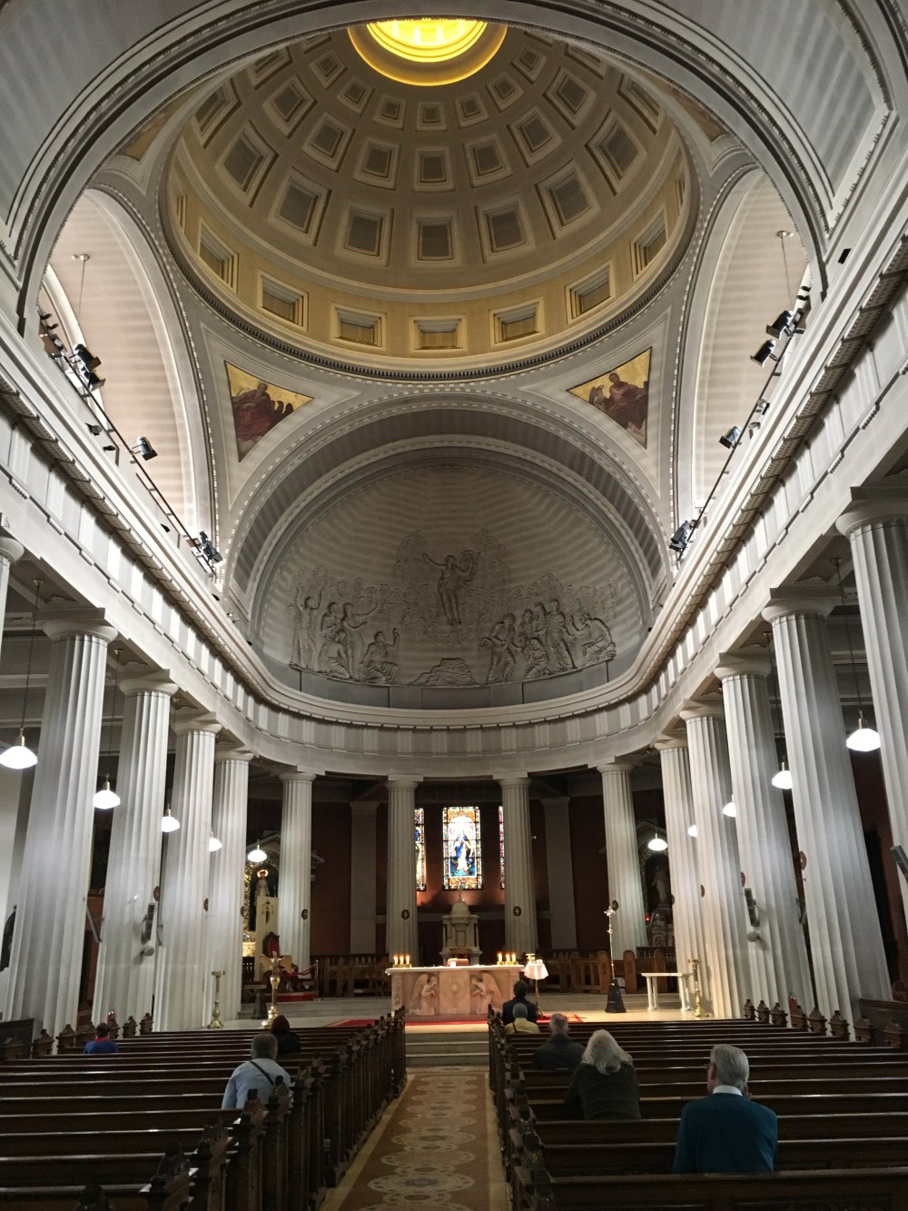So the pictures in order are as follows: Looking down the River Liffey, which splits the city in two. Next is this cool hand sculpture and building in the background. I’m not even sure what it is. The next two pics are the outside and inside of St Mary’s Pro-Cathedral (as in provisional). It’s not a full Cathedral since the Pope designated two other churches in town as Cathedrals.