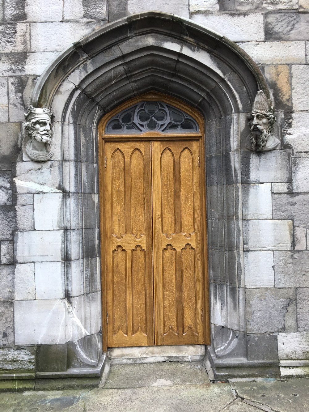 The next four pics are all tied in with Dublin Castle. As far as European castles go, this one is pretty lame (compare it to Neuschwanstein castle in Germany from one of my last trips)… OK, that just made me sound like a castle snob! Lol. The one pic of the wooden doorway with two heads next to it has St Patrick on the right. He brought Christianity to Ireland and also drove out the snakes.