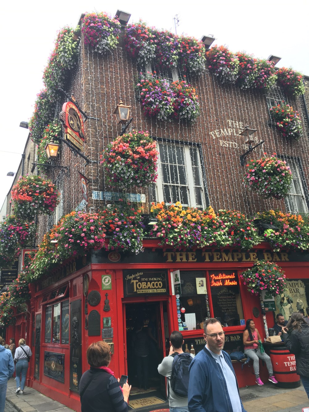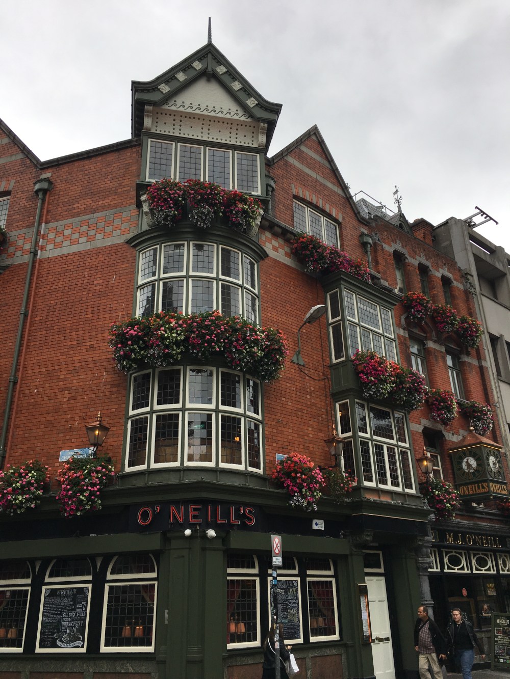 The next four are from what’s called the Temple Bar area. It’s name came from the Temple family and a “Bar” was a strip of land along the river. So it had nothing to do with an actual bar but there are many jammed into several blocks and they say it gets really rowdy at night. I was a little too tired tonight but am going to check it out tomorrow. I loved all the flowers around the bars.