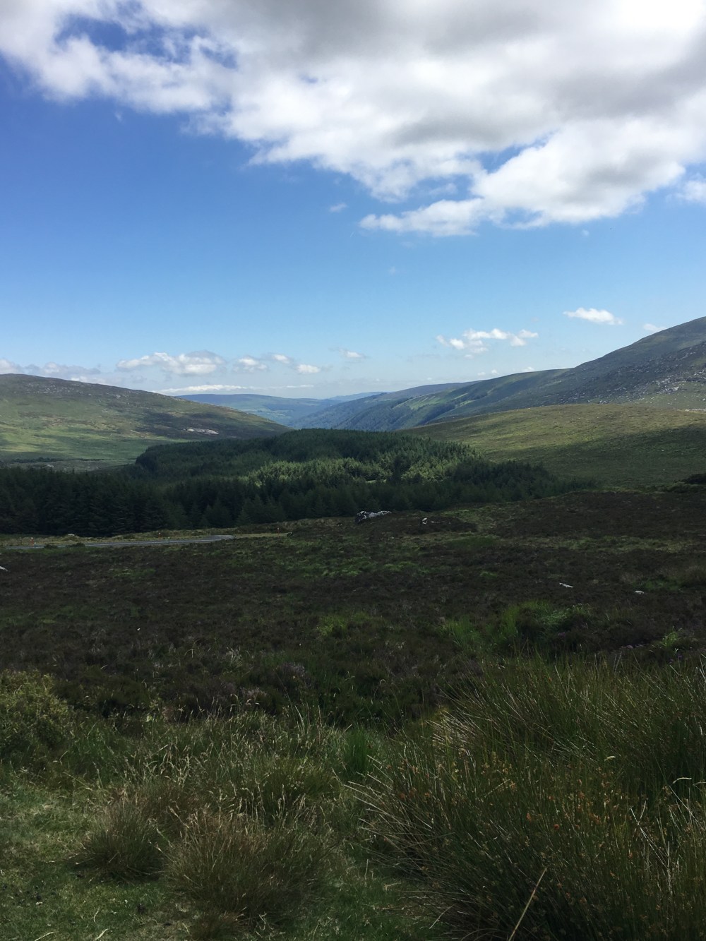 Next we drove through the Wicklow Mountains but along the way we drove thru the town of Hollywood. Believe it or not, that’s how the Hollywood in California got its name. Matthew Guirke immigrated to the US and became an important business man and christened the LA suburb after his home town in Ireland. Who knew?? Driving thru the mountains was really beautiful and we stopped for a photo op and I included it below.