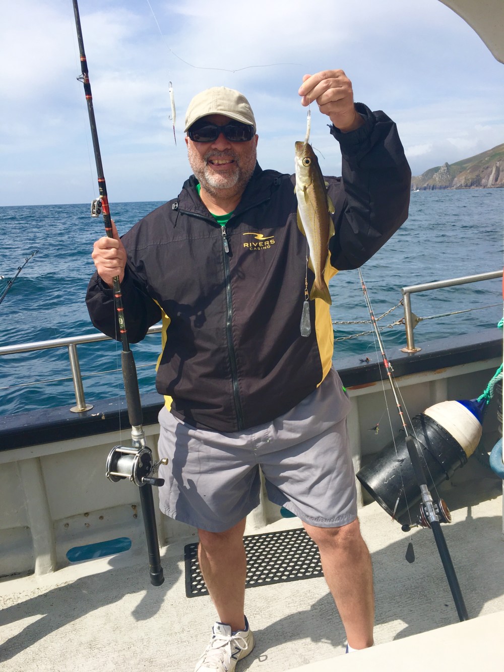 Then late morning/early afternoon I went deep sea fishing. It was so fun! And easy. We didn’t use bait, but rather 4 lures on each line, so we didn’t get our hands all nasty. And when you caught a fish, the captain would take it off for you. Easy peasy! I caught 5 fish (two haddocks and 3 small mackerels). But only the two haddocks were big enough to keep. The captain filleted them for me and I took them to the fish restaurant across from the marina to have them cook them up for me, but I got there too late. So they’re keeping them in their fridge and will cook them for me for dinner tomorrow. These people are so nice! There was only 5 of us onboard fishing and everyone caught several. This one little girl couldn’t have been more than 10 years old and she pulled in 4 small mackerels on one line! That was crazy!
