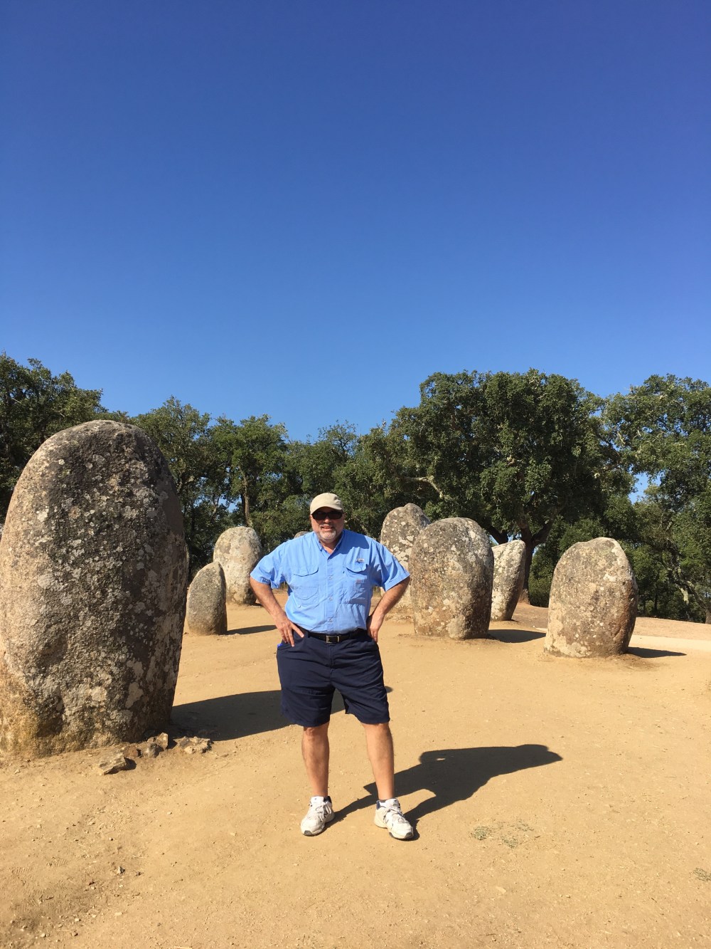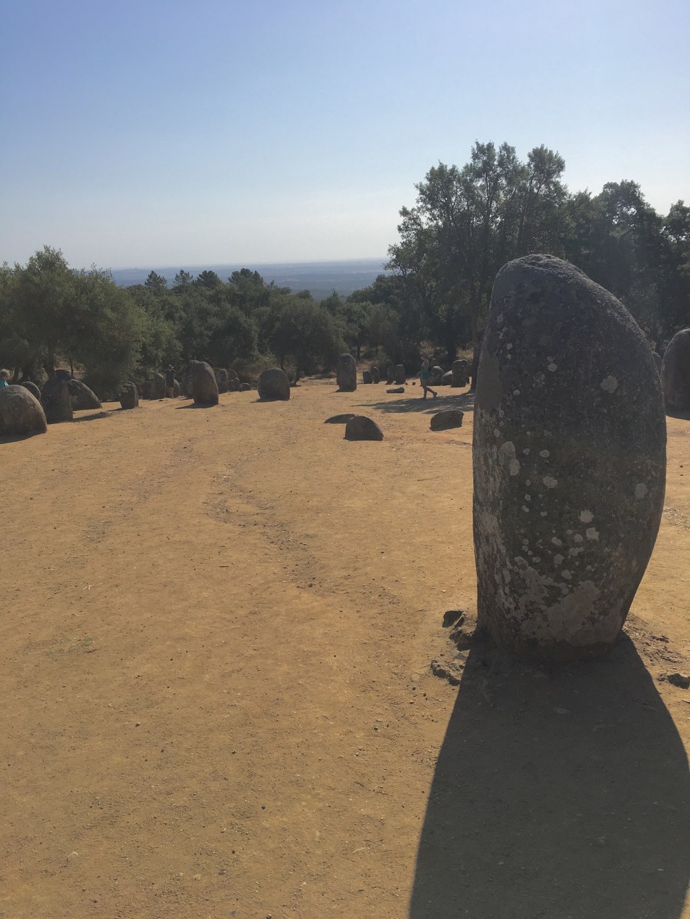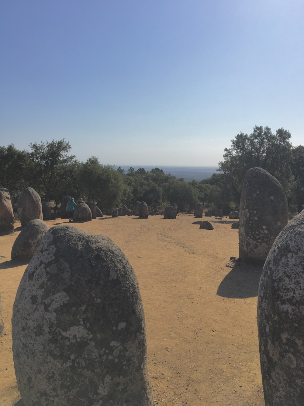The first stop was to a Megalithic site called Cromeleque dos Almendres. It’s the Stonehenge of Portugal and dates from about 5500 BC. It sits down this old dirt road amongst all these cork trees. The stones are set up in an oval pattern and are aligned for sunrise on the summer solstice. It’s the largest megalithic monument in Iberia and one of the oldest in Europe, some 2,000 years older than Stonehenge. Some believe that Stone Age sun-worshippers gathered at this pagan sanctuary in search of harmony between the “micro” environment on earth and the “macro” environment of the entire cosmos.