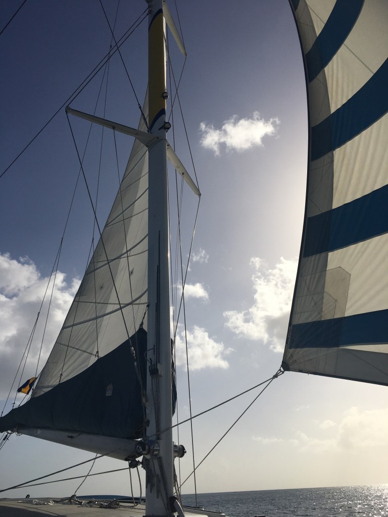 After a light lunch, we waited for our tour guide bus to pick us up and take us to our excursion for the day. We had scheduled an afternoon snorkel/sunset cruise on a catamaran. By 3:30 PM, we were sails up and cruising along the coastline. It was this huge catamaran/sailboat but there were only about 25 people on the boat so we had lots of room to roam.