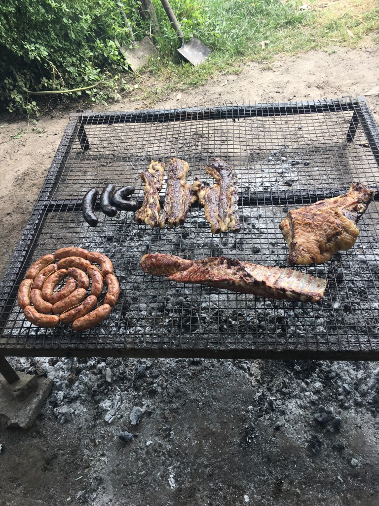 When we got back from the ride, they had the food all ready. They started with a salad and then a bowl of boiled type potatoes with hard boiled eggs in them. Both were really good but of course the main show was all the MEAT!! Have you ever been to that place called Chima Steakhouse or any similar Brazilian type Rodizio. It’s where they keep bringing out all kinds of meat until you tell them to stop. That’s what this was. You had to be a carnivore to enjoy it and it was all delicious. They served Bratwursts, Blood Sausage, pork spare ribs, Vacio (flank steak), and Asado de Tira (short ribs). What a feast!
