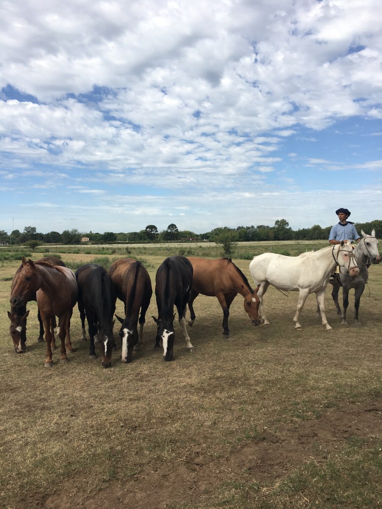 After leaving the town, we drove further out into the country to the Estancia. They were waiting there for us with drinks (lots of Malbec!) and empanadas (pastry type turnover filled with beef and other savory ingredients). They were so yummy! They showed us the asado (barbecue) they were preparing over the parrilla (grill). While the meat was cooking, they took us out on a 30 minute horse back ride across the pasture. It was so beautiful and peaceful. I hadn’t been on a horse in a long time but it was fun.