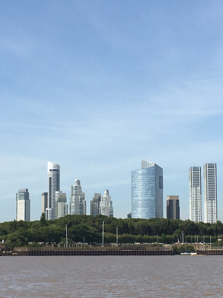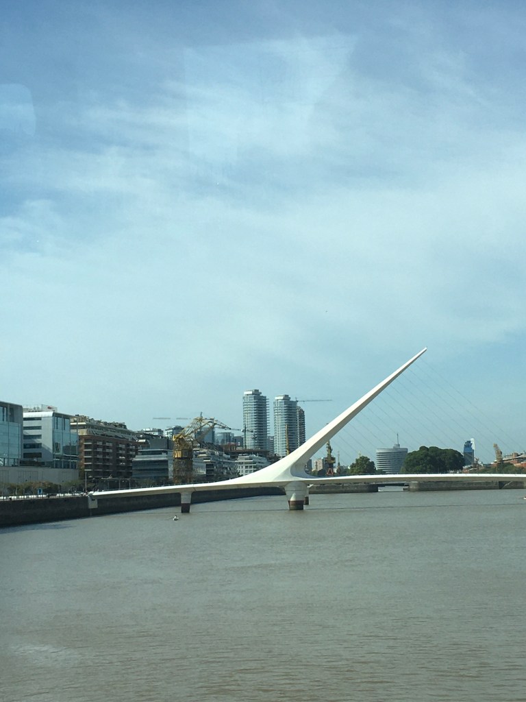 Our first stop was to the Port area (where all the cruise ships dock) called Puerto Madero. On our way we saw the pedestrian bridge called Puente de la Mujer (Women’s Bridge). It was unveiled in 2001 and resembles a sharp fishhook or even a harp (it’s supposed to represent a couple dancing the Tango). I included a pic below so you can decide! I also included a pic of part of the Buenos Aires skyline.