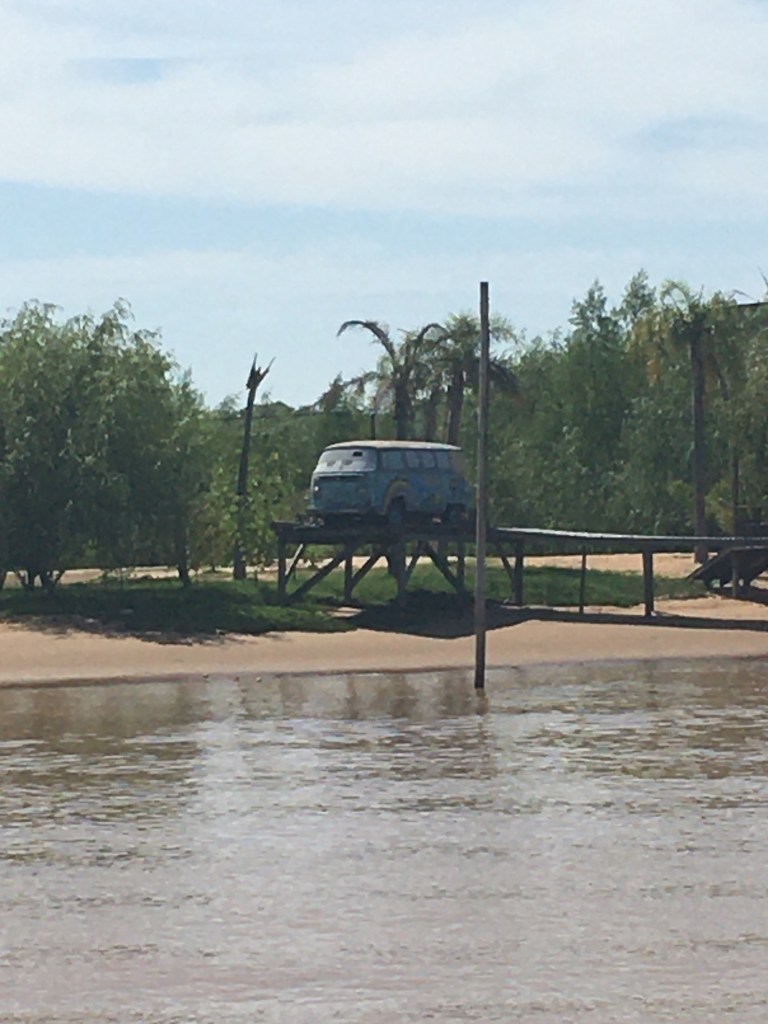 We then boarded our boat to head to what’s called the Tigre and Delta region. The town of Tigre and the surrounding Delta region (it’s the 3rd largest river delta in the world, think Mississippi River delta) is a popular weekend getaway for “Portenos” (residents of Buenos Aires). Locals live along the peaceful canals with boats as their only transportation. There are boat taxis, boat buses, and even a floating boat grocery store that delivers! If they want a delivery, they put a plastic bag out on their dock and the boat stops. We saw tons of people kayaking and canoeing. Our boat just slowly meandered the delta seeing cool houses along the water. One looked like an old VW hippie van that I assume someone was living out of. Hey, it had a dock and a great water view!