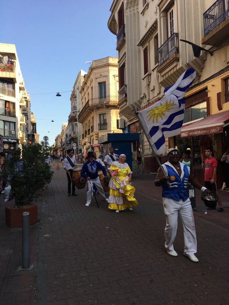 As we finished up our walk, we heard this loud band coming down the street. The guide explained it as the Candombe style of music and dance that immigrated to Uruguay with African Slaves. This Uruguayan music style is based on three different drums: chico, repique, and piano drums. Let me tell you, while those young guys could play those drums, it was the three older people dancing and waving the flag that were a hoot!