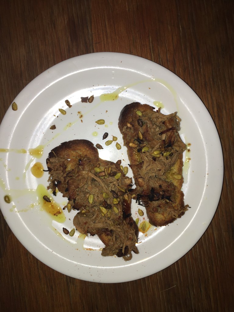 After the tour I was hungry but wanted something different than steak. So I found this great restaurant right around the corner from my hotel. For an appetizer I had bruschetta with pulled pork (shout out to the Carolinas!). Then for my main course I had this fish soup that was chock full of shrimp and chunks of swordfish with this brown gravy type broth with rice. The flavor was incredible. They also served it with a salad and this lentil based olive oily pesto type mixture to put on their yummy bread. Wow, I was full!