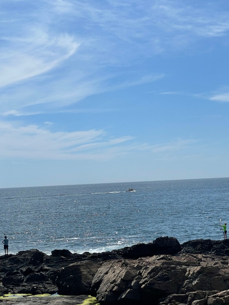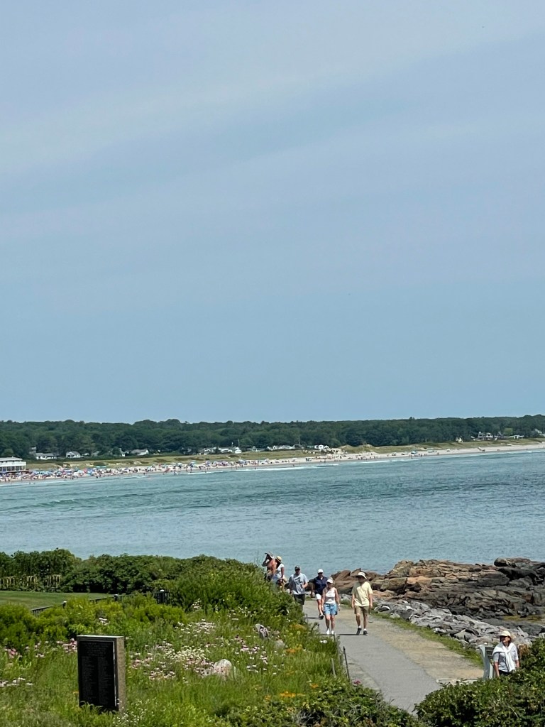 Today we spent most of the late morning/early afternoon in the town of Ogunquit. It has a cute little cove with boats in it called Perkins Cove. There were also lots of shops and restaurants in this small little beach town. It is one of the rare places in Maine that has a long sandy beach area. But the highlight of the day was a walk along what’s called “The Marginal Way” and let me tell you, it’s anything but marginal! The name came from it being on the margin between the land and sea. It is a picturesque 1.5 mile paved path right along the rocky coastline with expansive views out across the ocean and beautiful homes situated along its path. The beauty of that walk is worth a trip to this little town but the town itself is great as well.