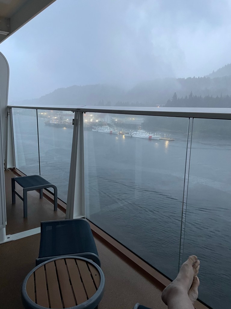 We set our clocks back an hour last night so we got an extra hour sleep. The day started out with a pinch of sun but then quickly got foggy and rainy. So we decided to have a relaxing breakfast (but a big one! Lol) and not get off the ship until around 11 for our excursion of the float plane into the Misty Fjords. If you’ve never been on a float plane, which takes off and lands via water, it is quite the experience! But alas, the rainy Ketchikan did us in… our excursion was cancelled due to weather. We were all really bummed but safety does come first.