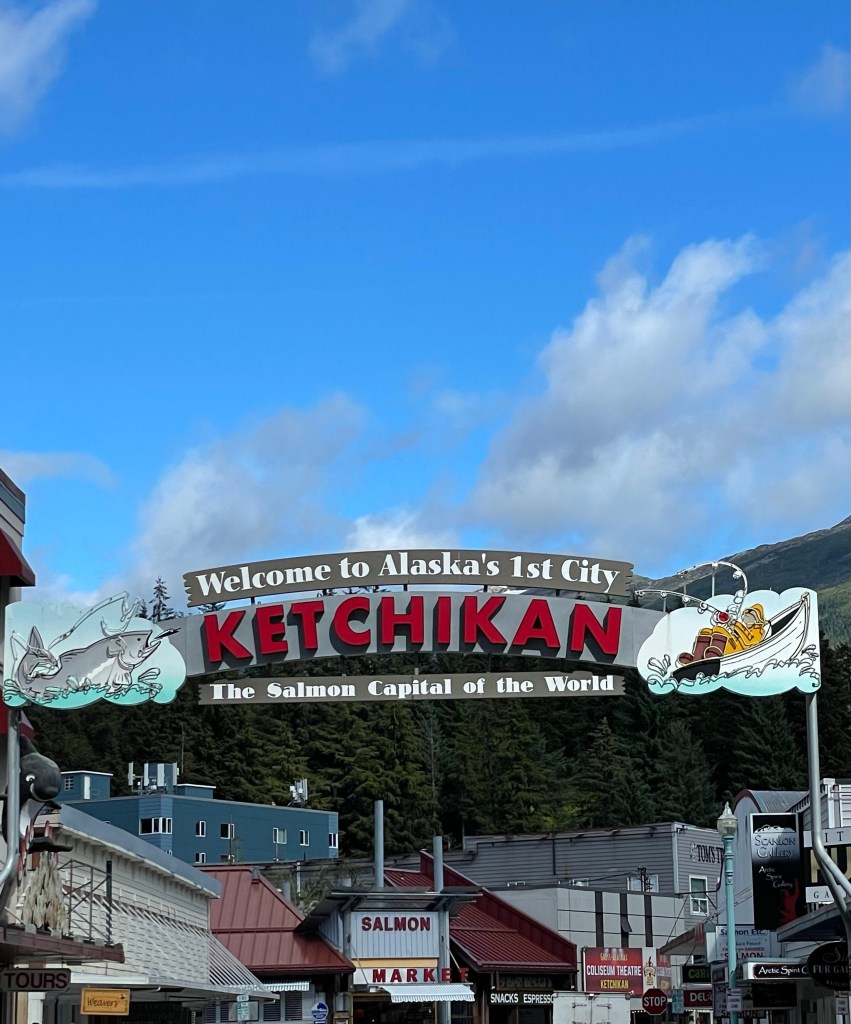 Well gang we officially landed in The Last Frontier! First stop, the salmon capitol of the world, one of the rainiest cities in America that receives 261% more rain than the national average, and the first incorporated town of Alaska in 1900… Ketchikan!