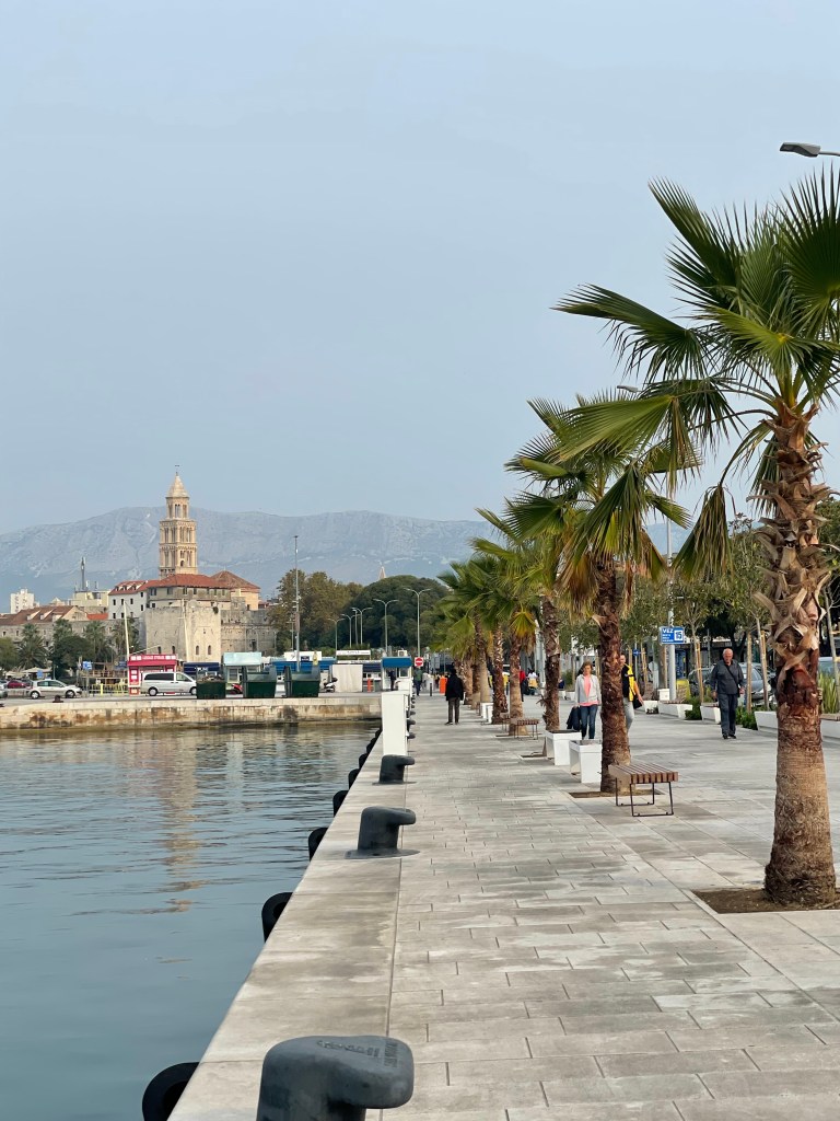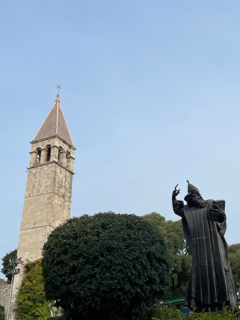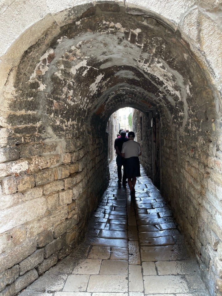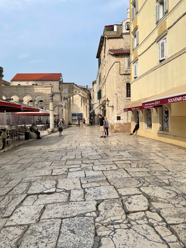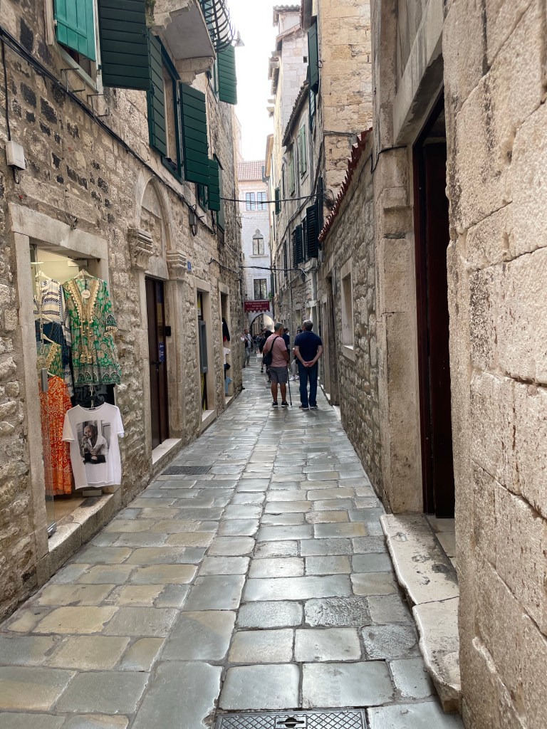 Sunrise boat race into Split!Promenade along Split that they call the Riva!Statue of Gregory of Nin at the entrance to the Golden Gate of the PalaceCathedral of St Domnius!The Main Square or Peristyle where Diocletian would greet visitors!Mausoleum where Diocletian is buried!Original Roman street from almost 1,700 years ago!Narrow passageway!Another cool narrow street!