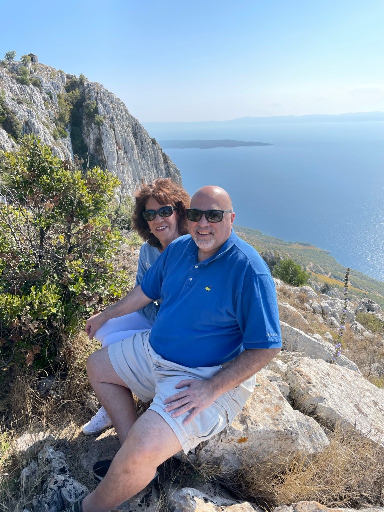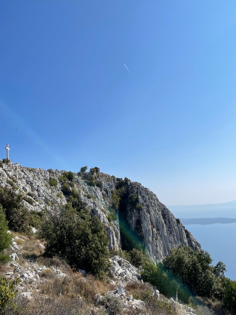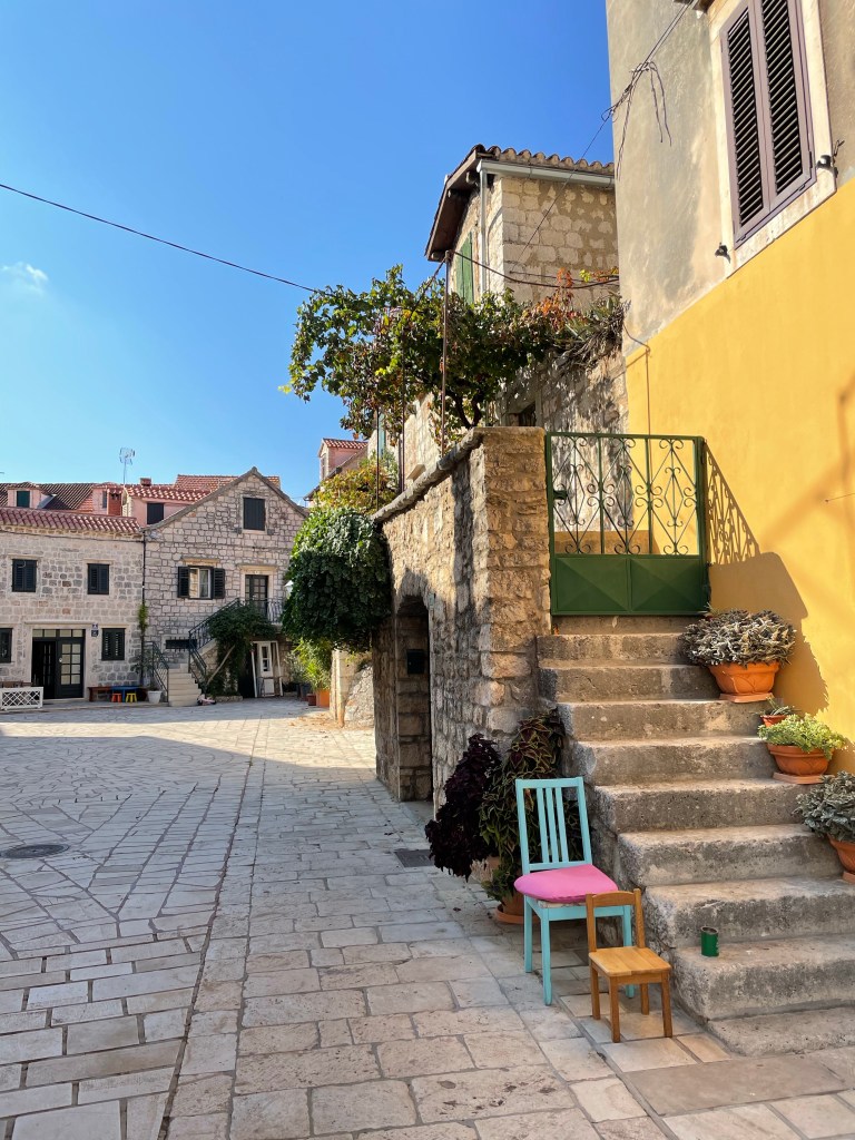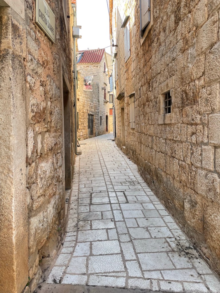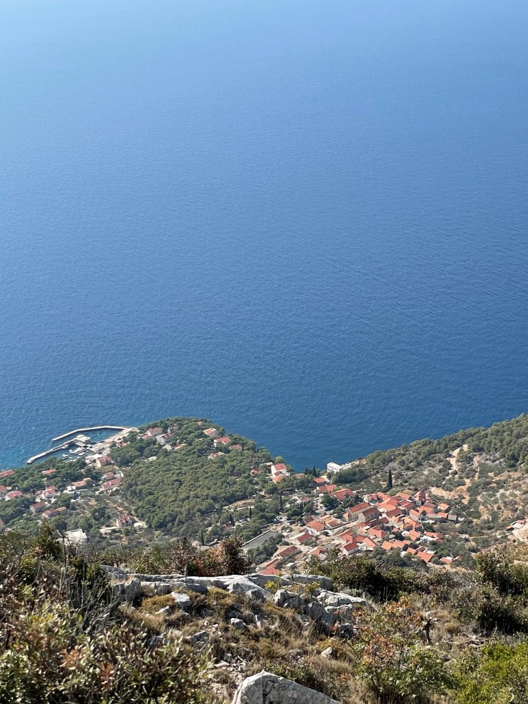 Looking down on Stari Grad!Highest peak in Hvar!Chillin’ near the highest peak in Hvar!Enjoying our delicious peka lunch!The making of the Peka lunch!In the town of Vrboska, also known as Little Venice!Harbor at Stari Grad!Cute section of Stari Grad!Narrow streets of Stari Grad!Bell Tower in Stari Grad!