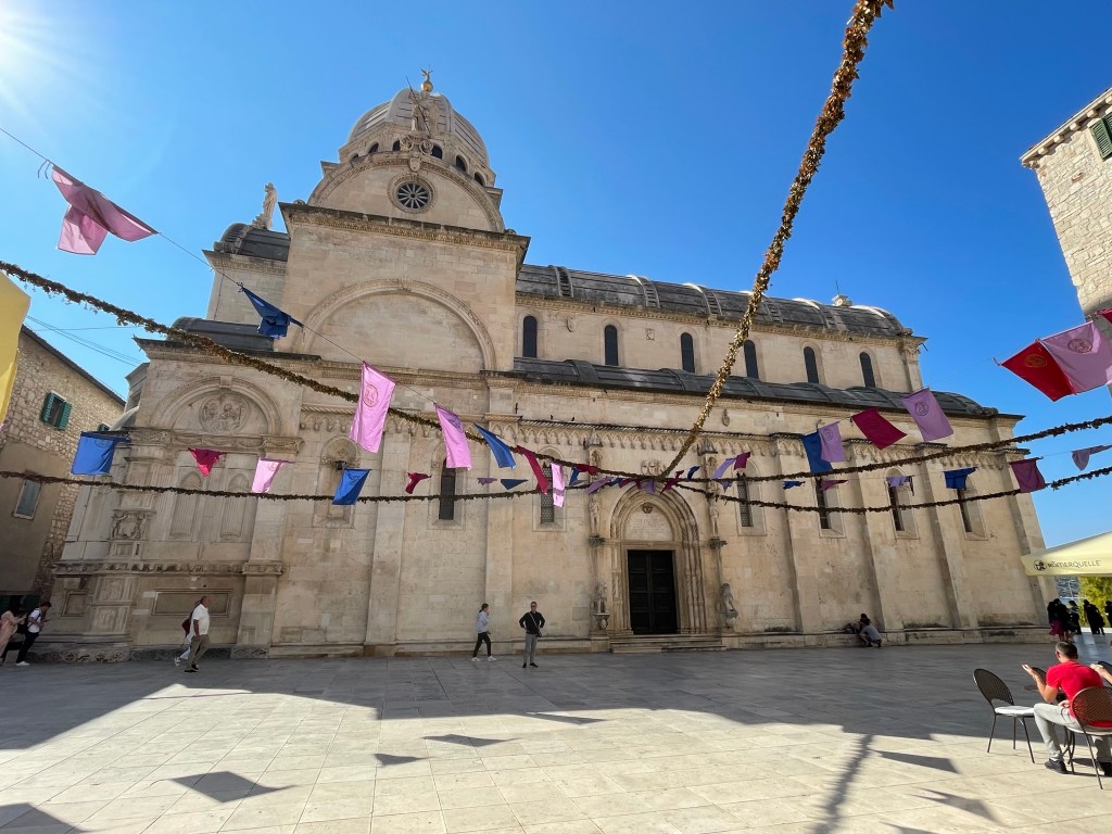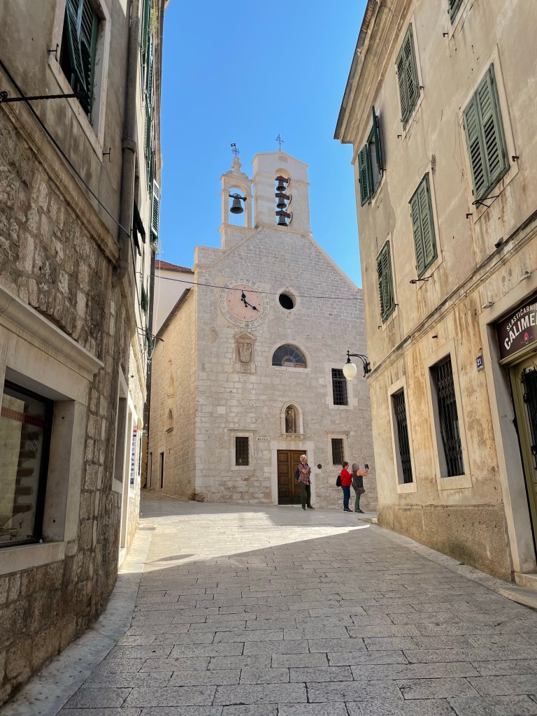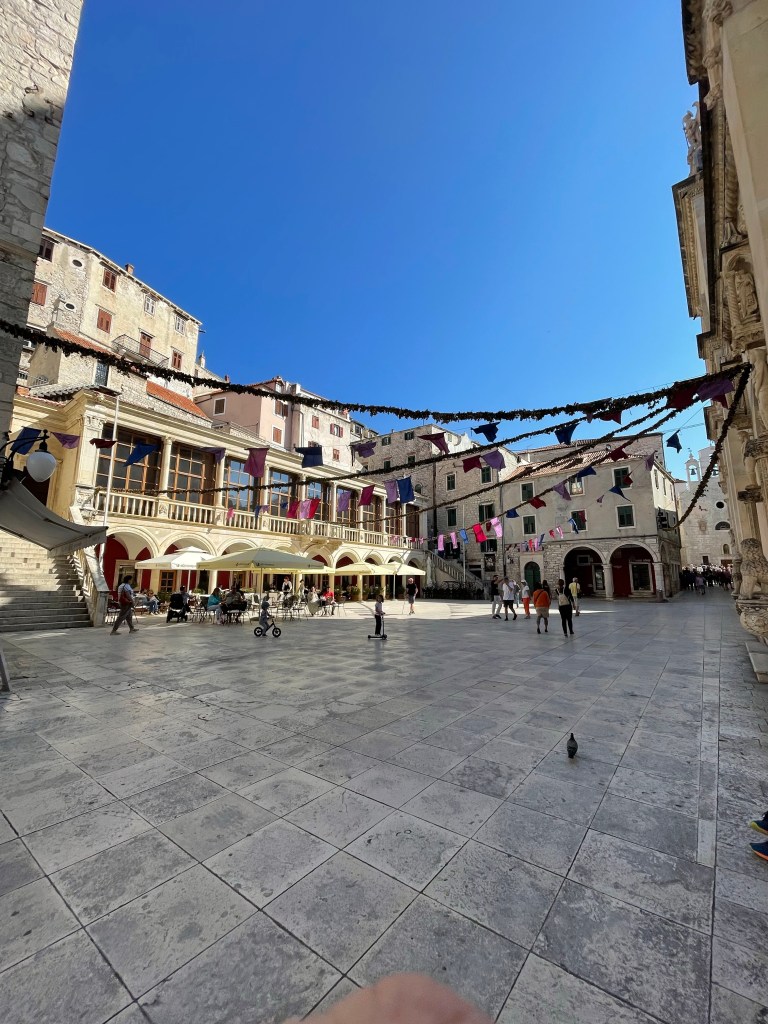 Sunrise coming in to Sibenik!Sibenik just waking up!The Riva (waterfront promenade) in Sibenik!Town Square in Sibenik!Cathedral of St James in Sibenik!Cute little church in Sibenik!Not sure what this statue in Sibenik represented but it was cute!Cool entrance to a hotel in Sibenik!Sunset as we left Sibenik!