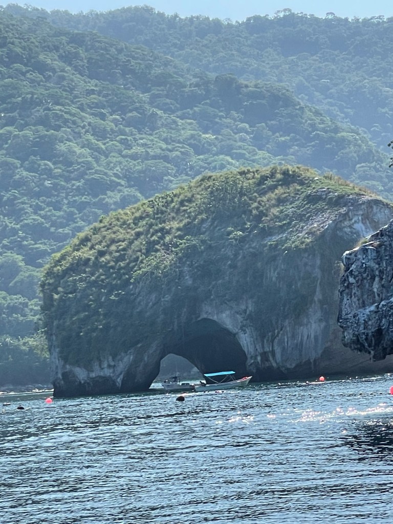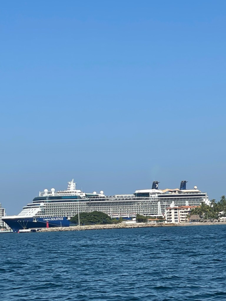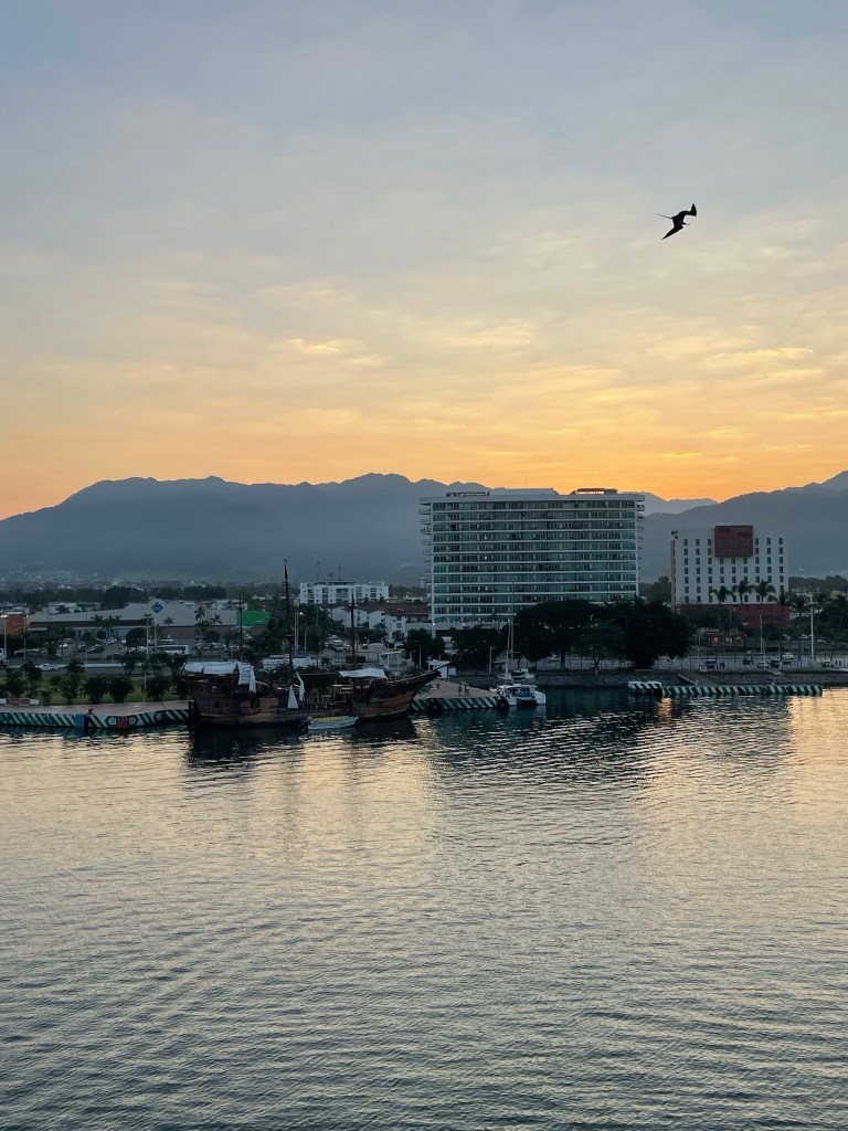 Puerto Vallarta just waking up!Snorkel spot; cool cave!Another snorkel On the sail boat!Our amazing lunch on the sailboat!Just chillin’ after snorkeling!Cool church along the coast!Our cruise ship from our sail boat!Me and the guy protecting us from the drug cartel!