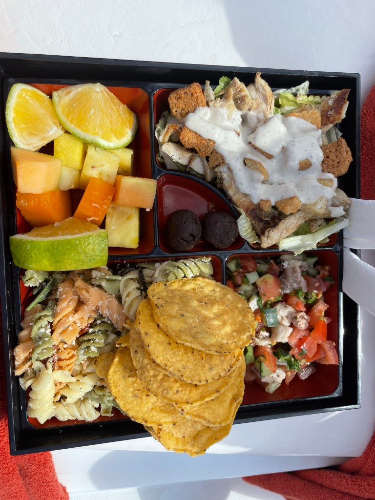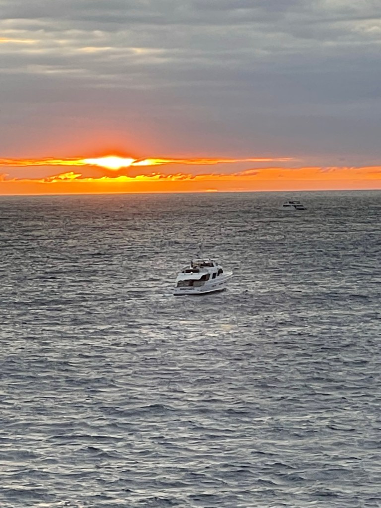 Our snack!WHALES!Our Snorkel Spot! On the Boat! And NO, I’m not pregnant, that’s just all that good cruise food! LolOur Lunch!They let me steer the boat!Sea Lions!Sunset Leaving Cabo!